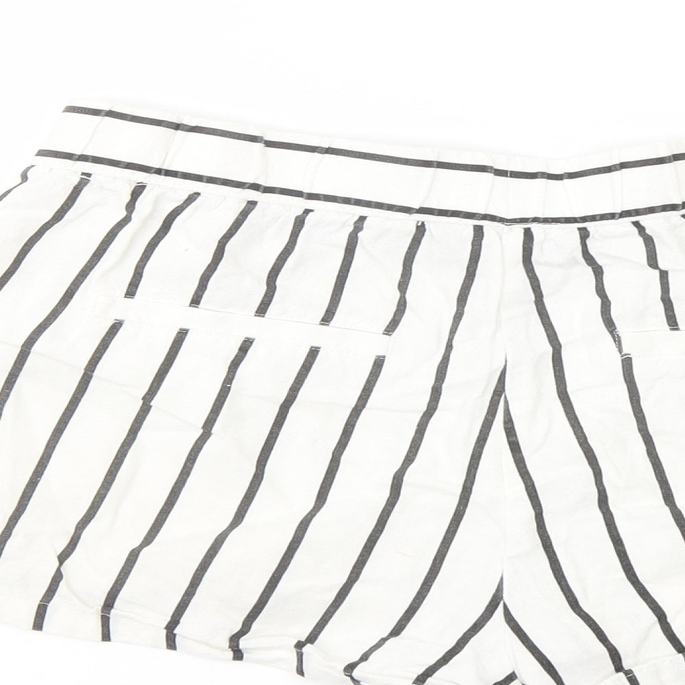 VERO MODA Womens White Striped Linen Cut-Off Shorts Size S L3 in Regular Button