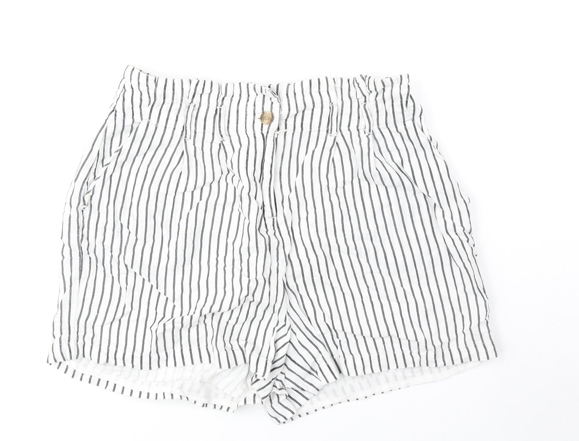 VERO MODA Womens White Striped Polyester Culotte Shorts Size S Regular Zip