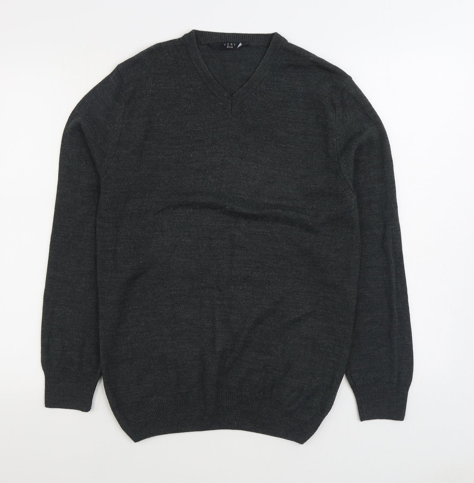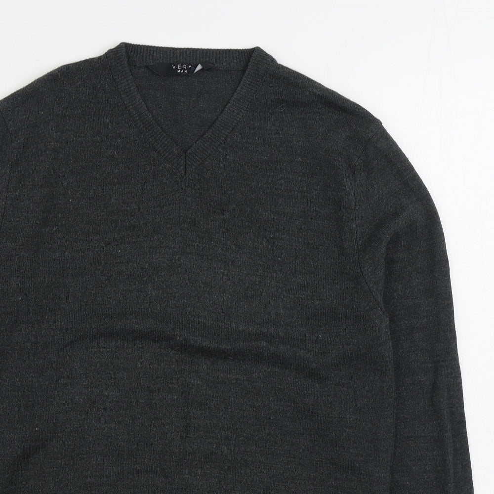 Very Man Mens Grey V-Neck Acrylic Pullover Jumper Size S