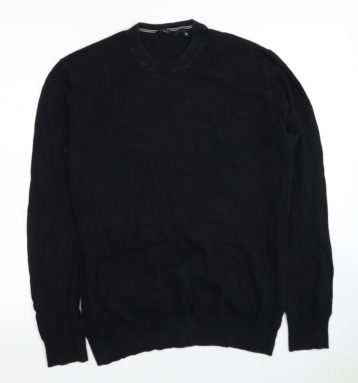 Very Mens Black Round Neck Cotton Pullover Jumper Size M