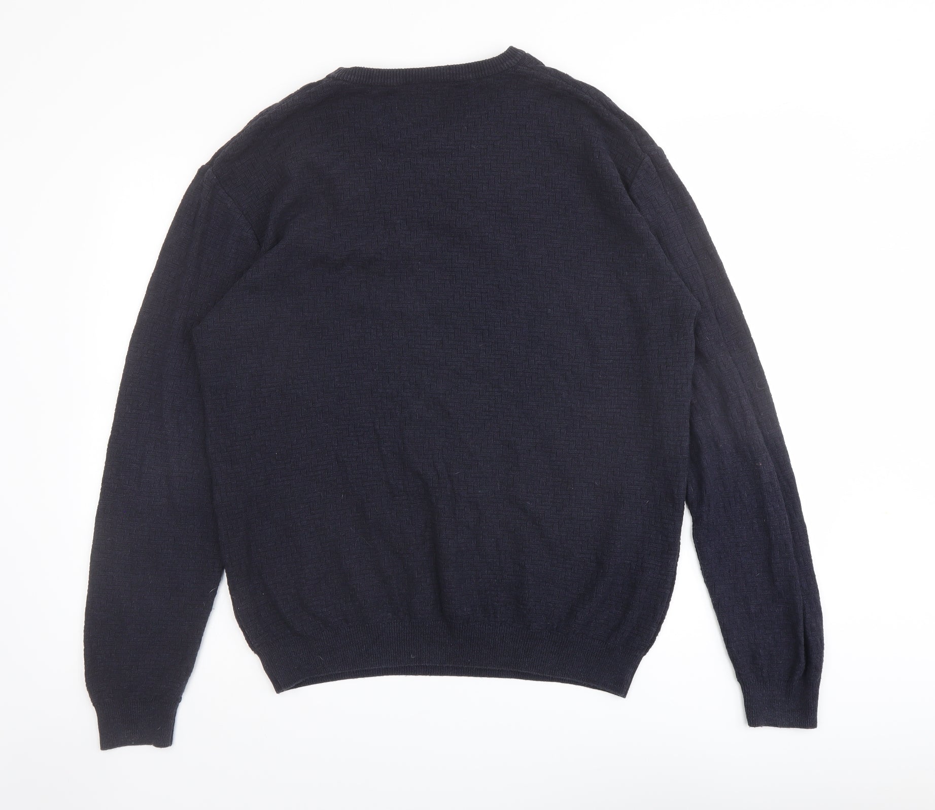 Very Mens Blue Round Neck Geometric Cotton Pullover Jumper Size M Long Sleeve