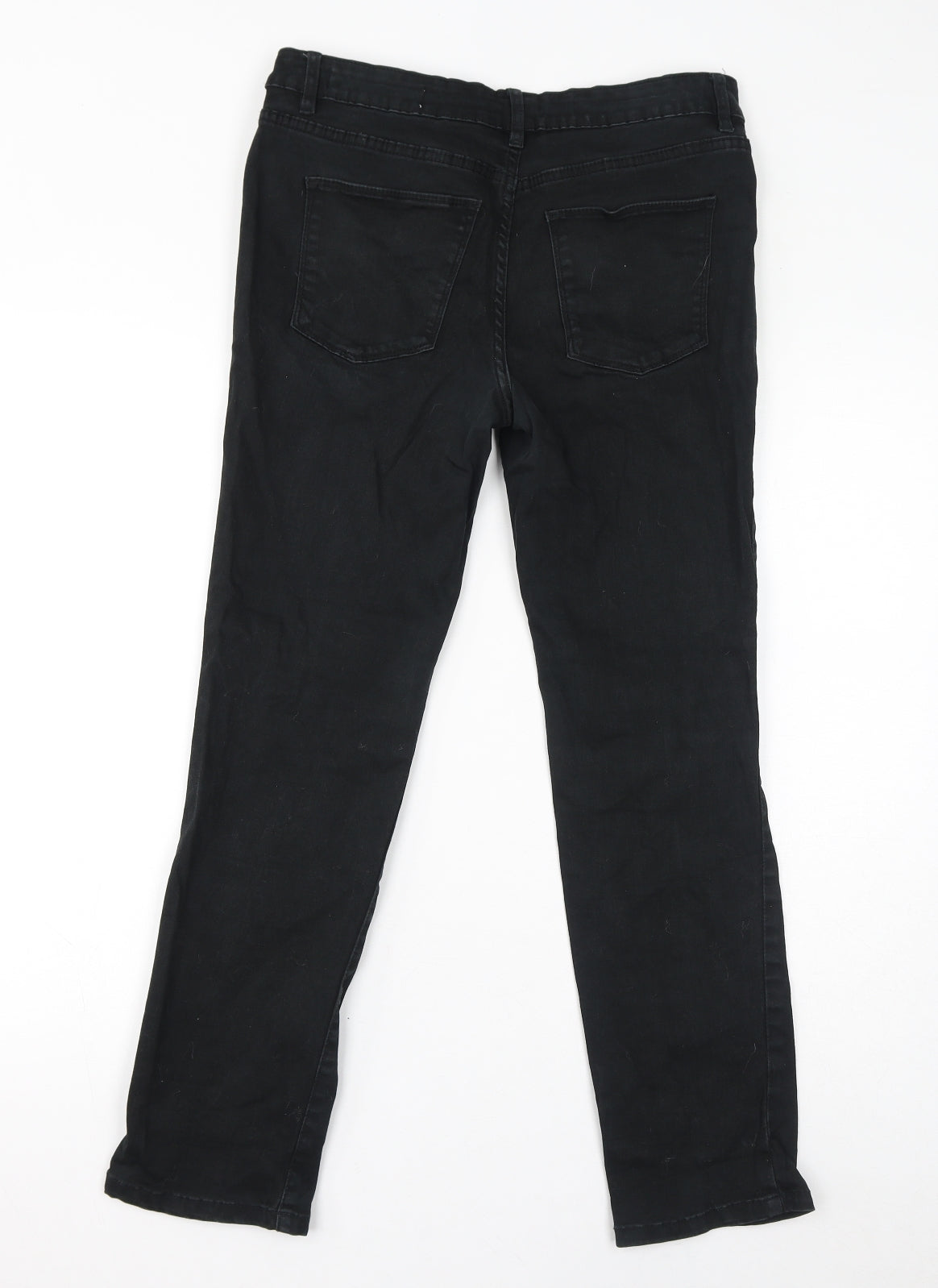 Very Womens Black Cotton Straight Jeans Size 12 L27 in Slim Zip