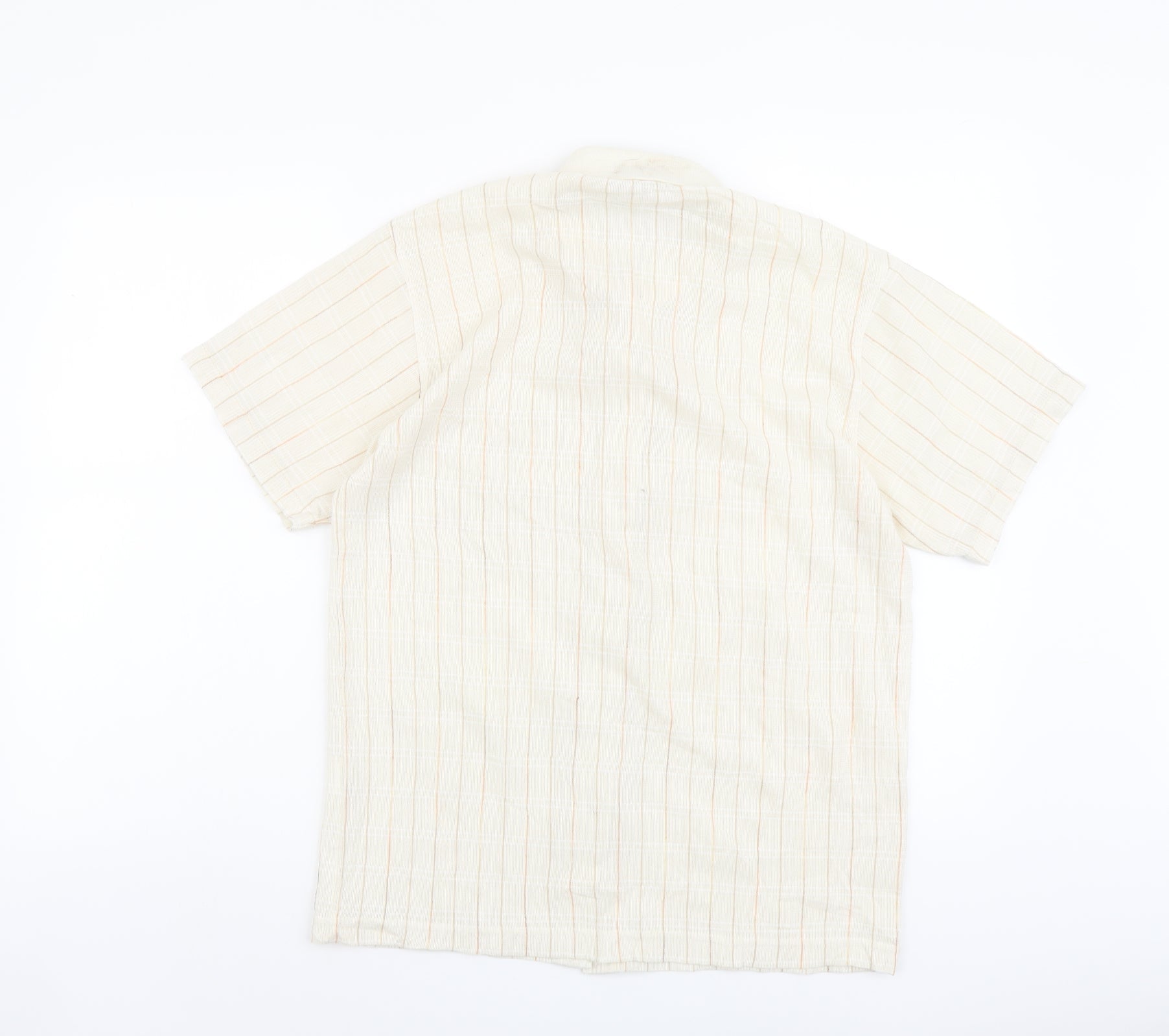 Vieste Mens Beige Striped Polyester Button-Up Size S Collared Button