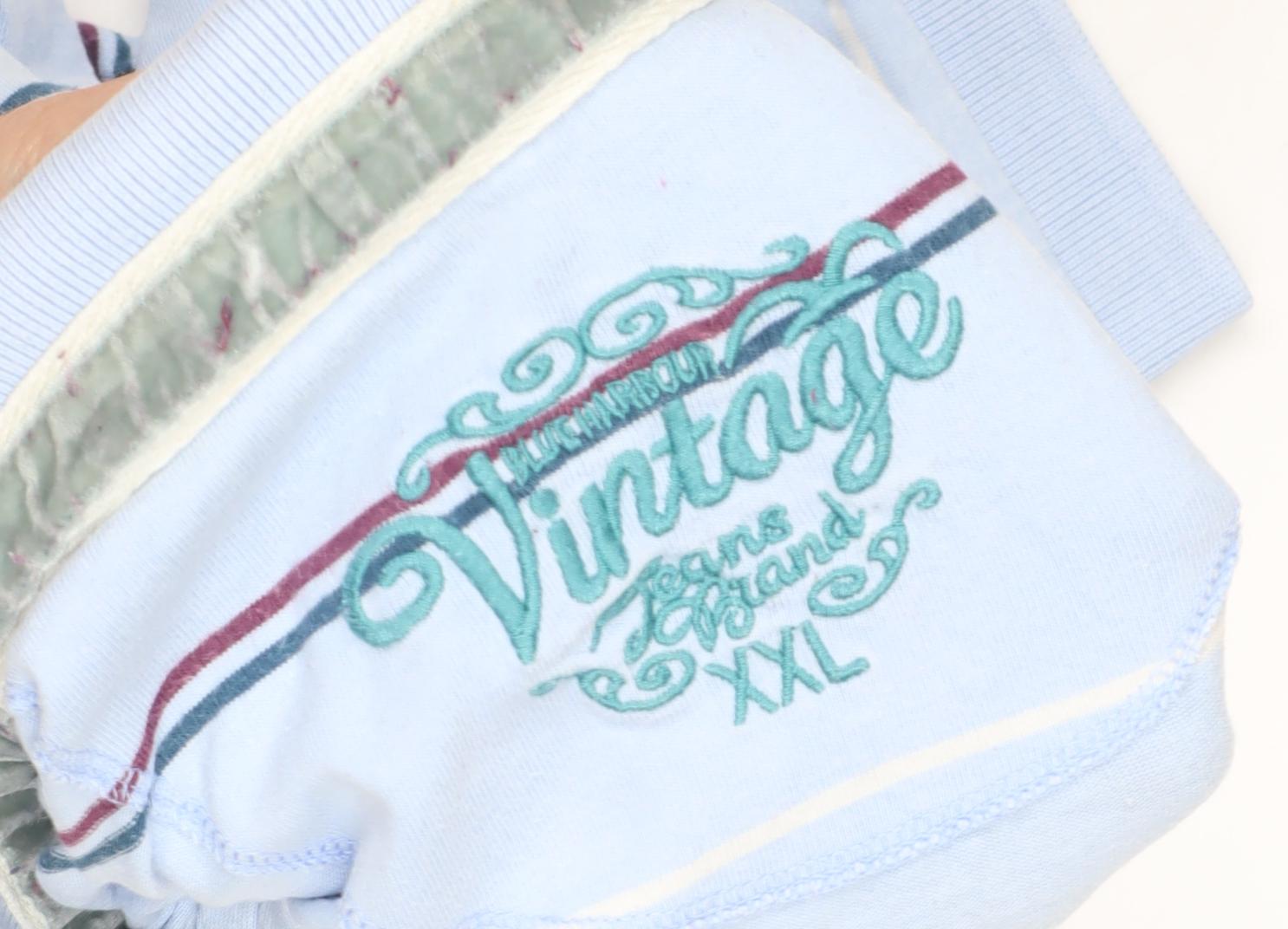 Vintage Men's Blue Striped Polo Shirt 2XL