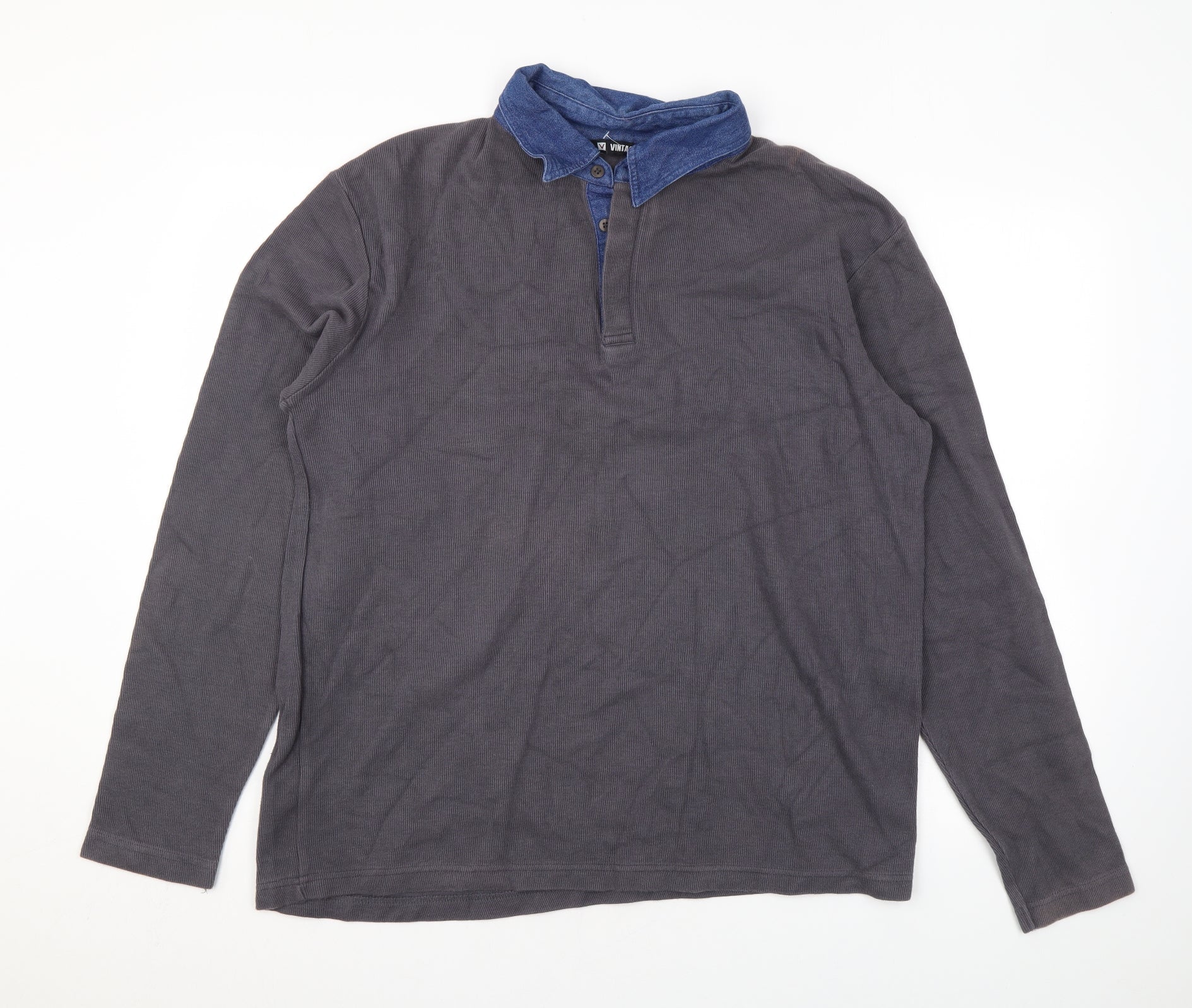 Vintage Mens Grey Cotton Polo Size XL Collared Button