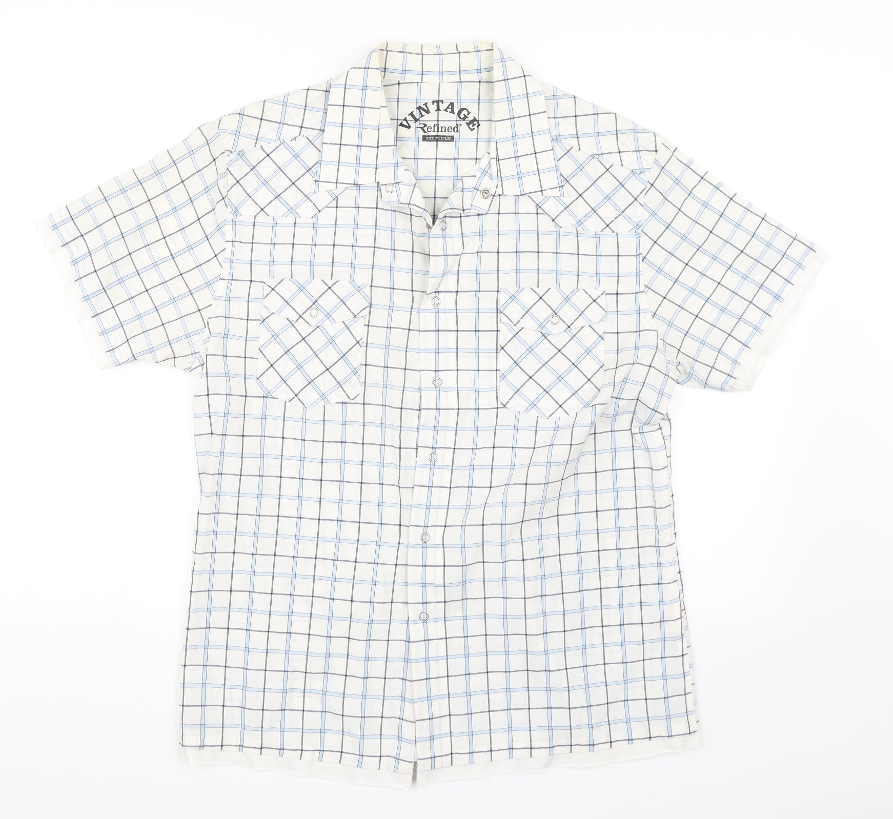 Vintage Refined Mens Blue Check Button-Up Size M