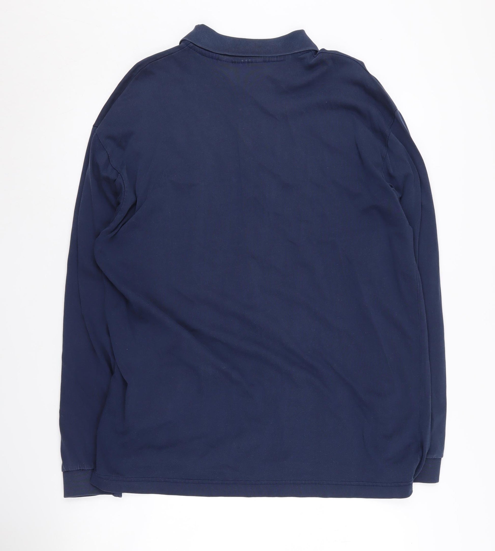 Viyella Men's Blue Polo Shirt Size L Long Sleeve Logo