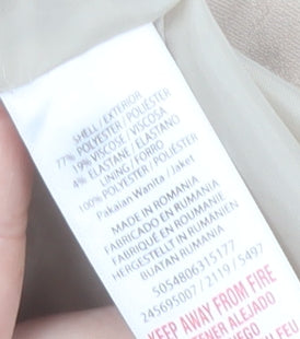 - Material Breakdown: 77% Polyester 21% Viscose 2% Elastane