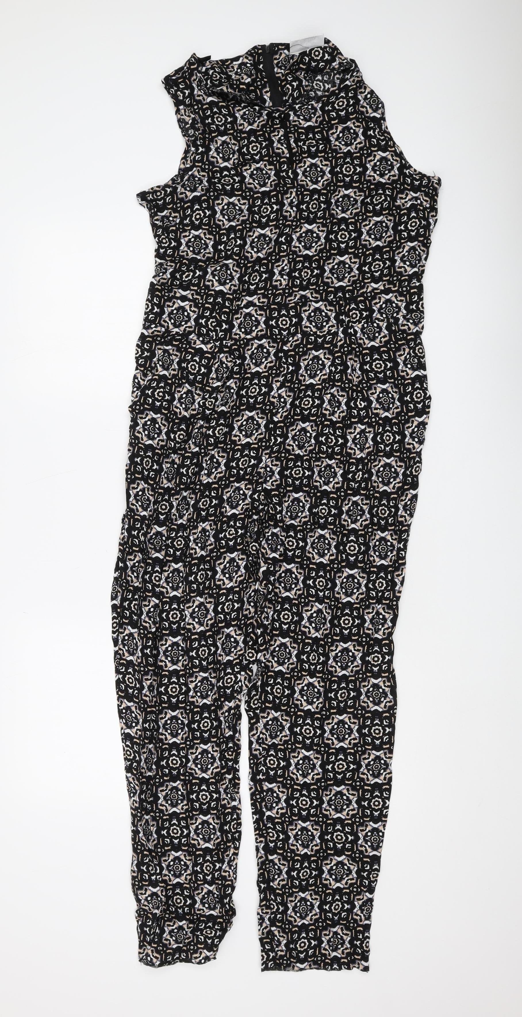 Wallis Women's Black Geometric Jumpsuit Size 12