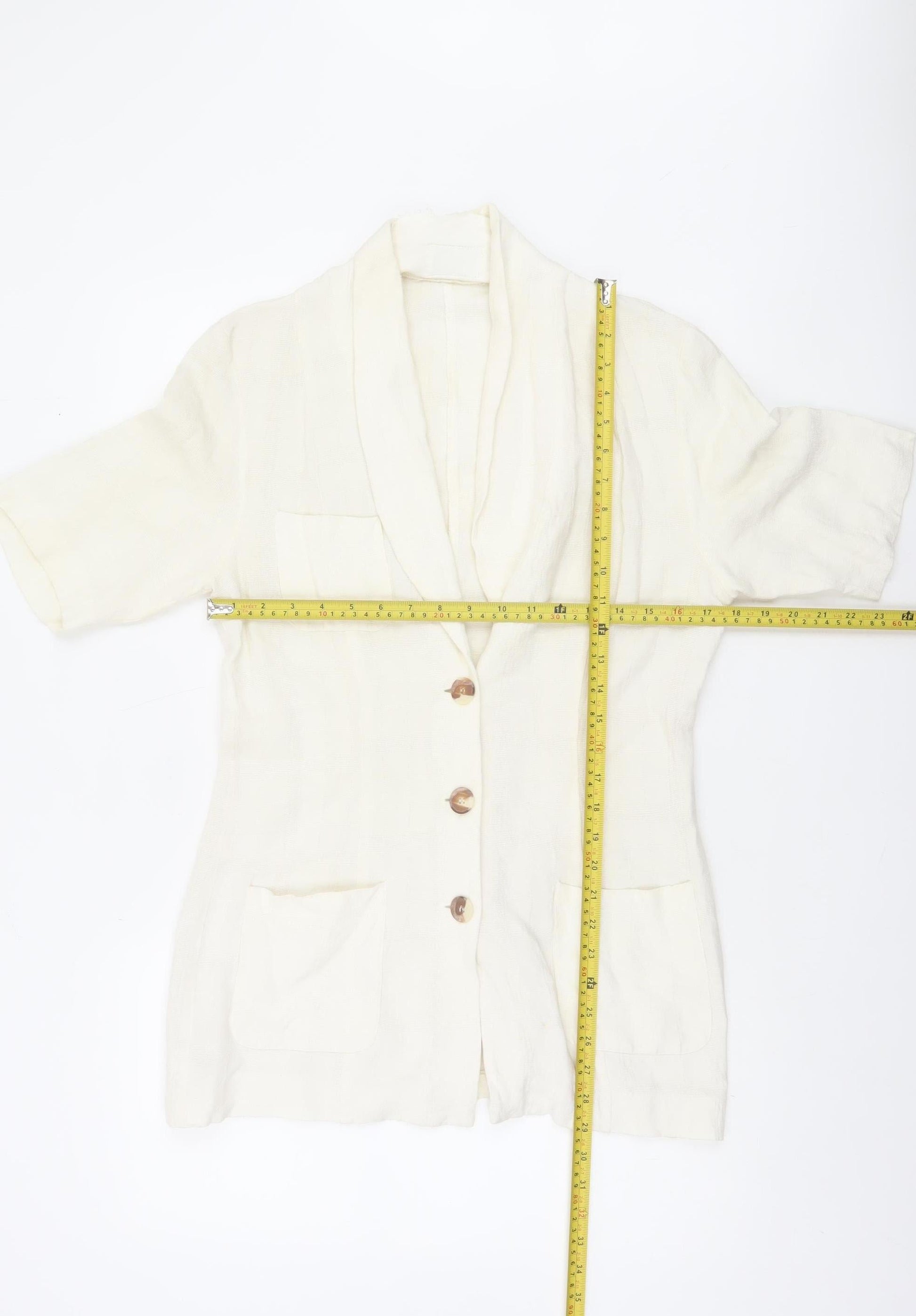 Wallis Womens Ivory Linen Blend Short Sleeve Shawl Collar Suit Jacket Size 12