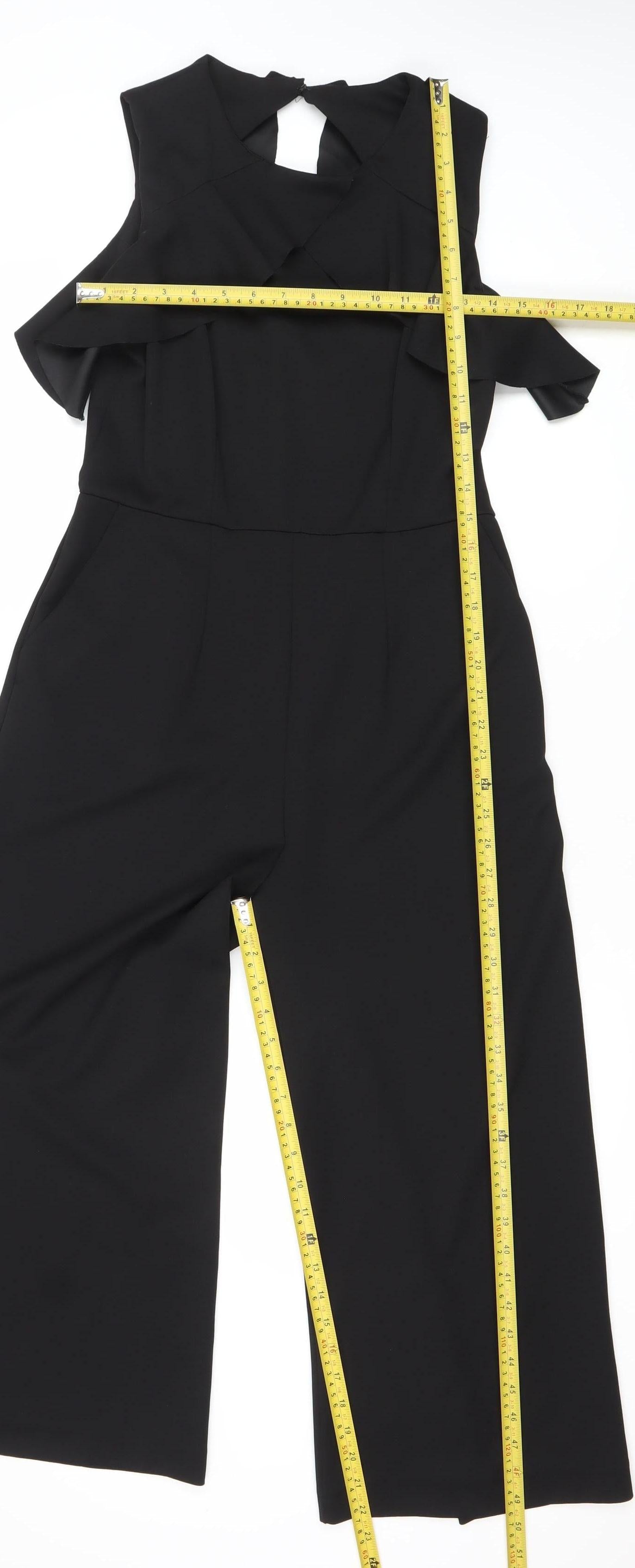 Warehouse Women’s Black One Shoulder Wide-Leg Ruffle Jumpsuit Size 12