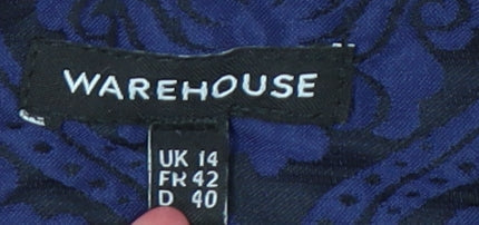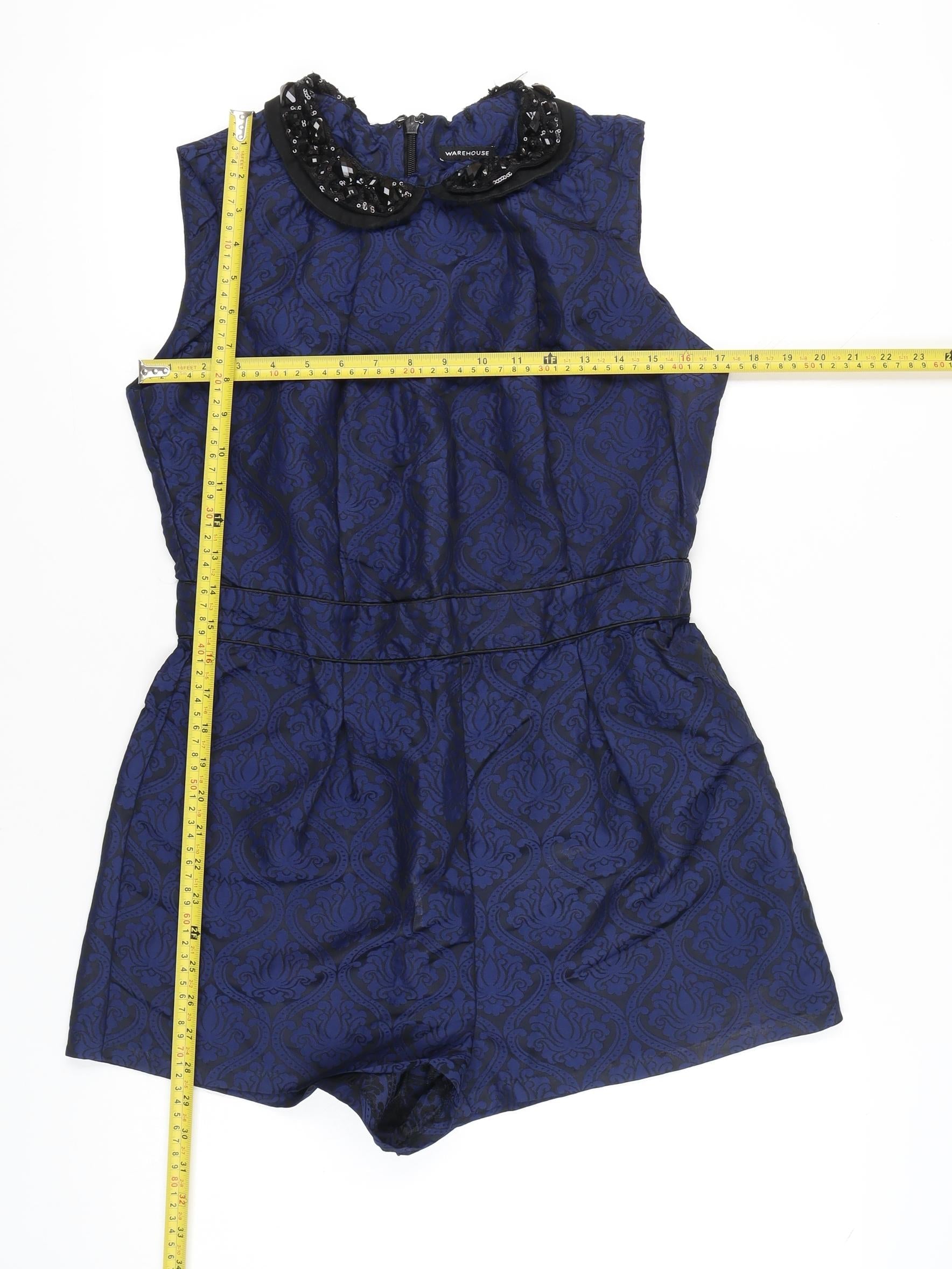 Warehouse Women’s Blue Jacquard Beaded Collar Sleeveless Playsuit Size 14