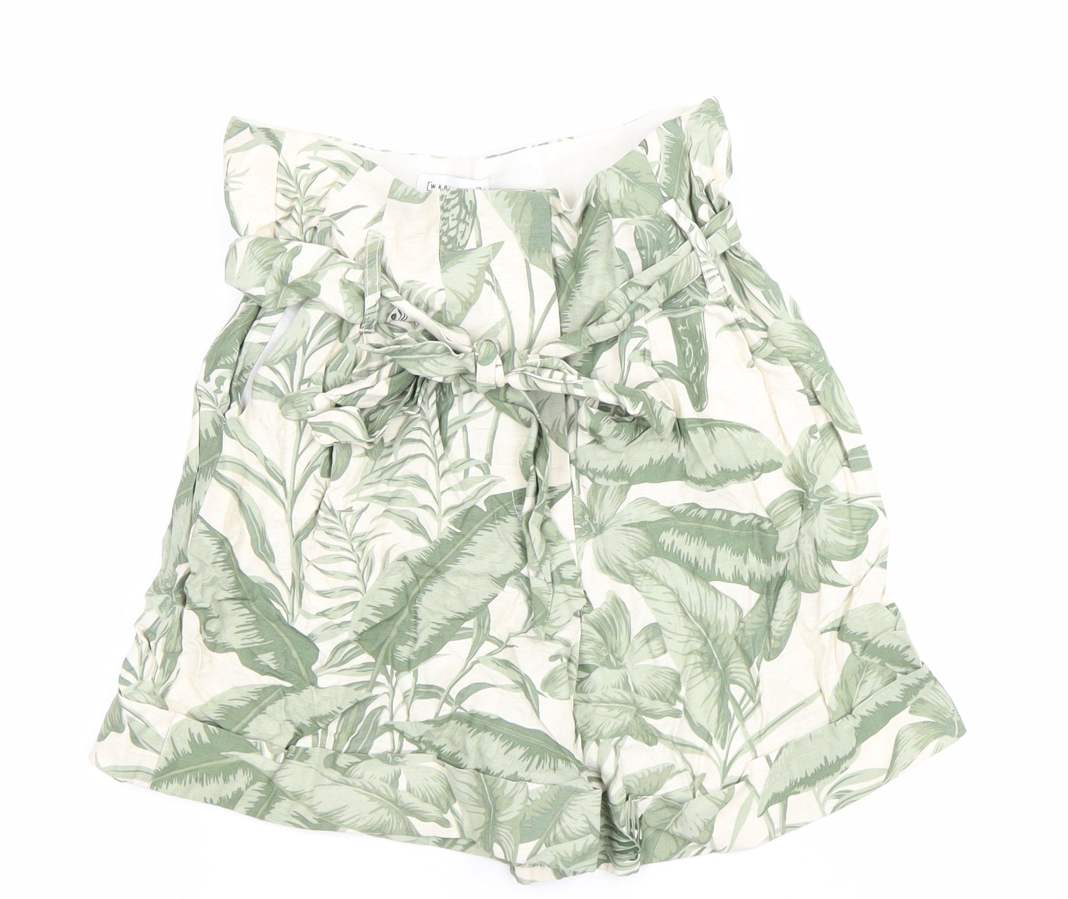 Warehouse Women’s Green Paperbag Shorts Size 8 Tropical Print Linen