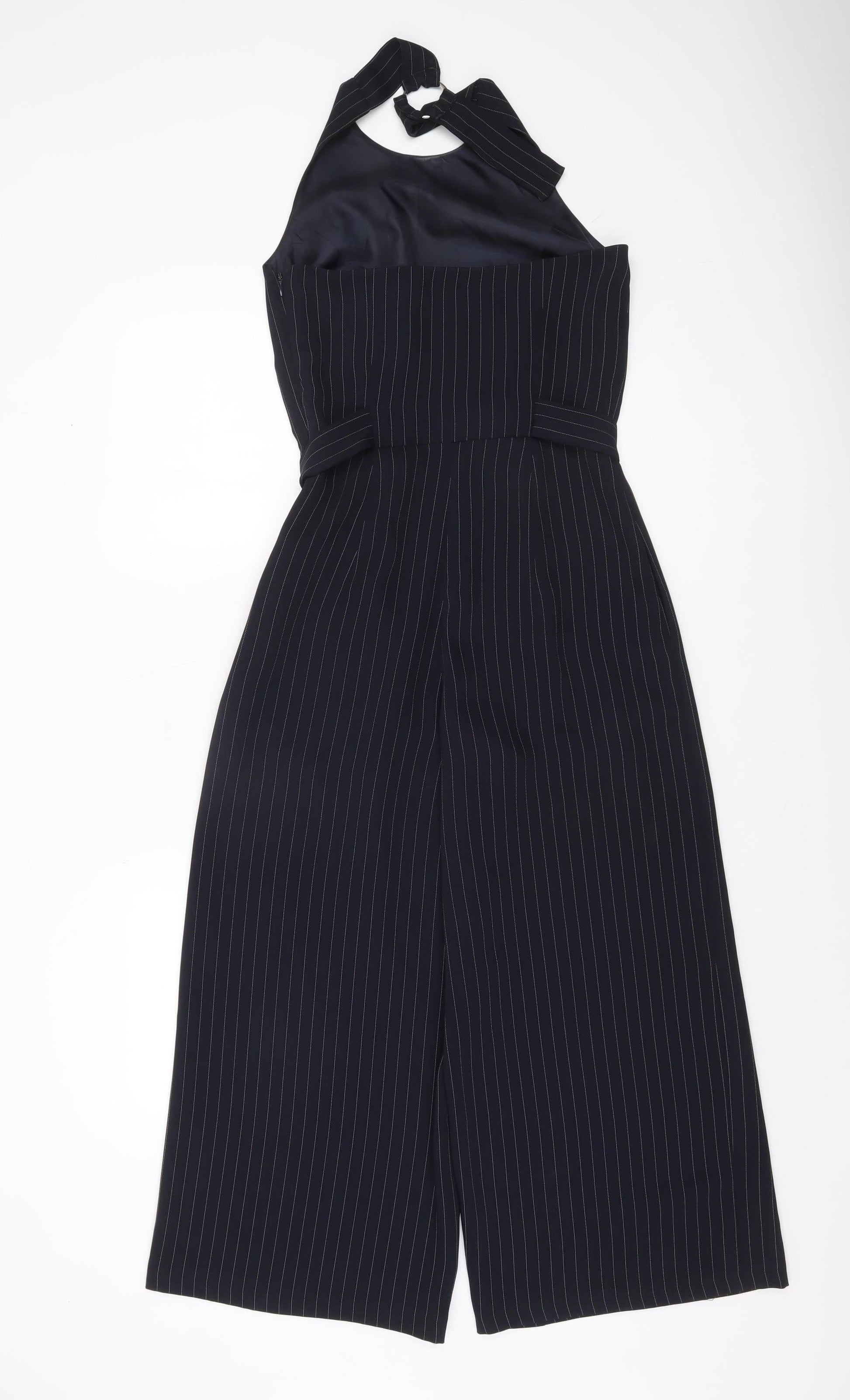 Warehouse Women's Black Pinstripe Halter Wide-Leg Jumpsuit Size 8