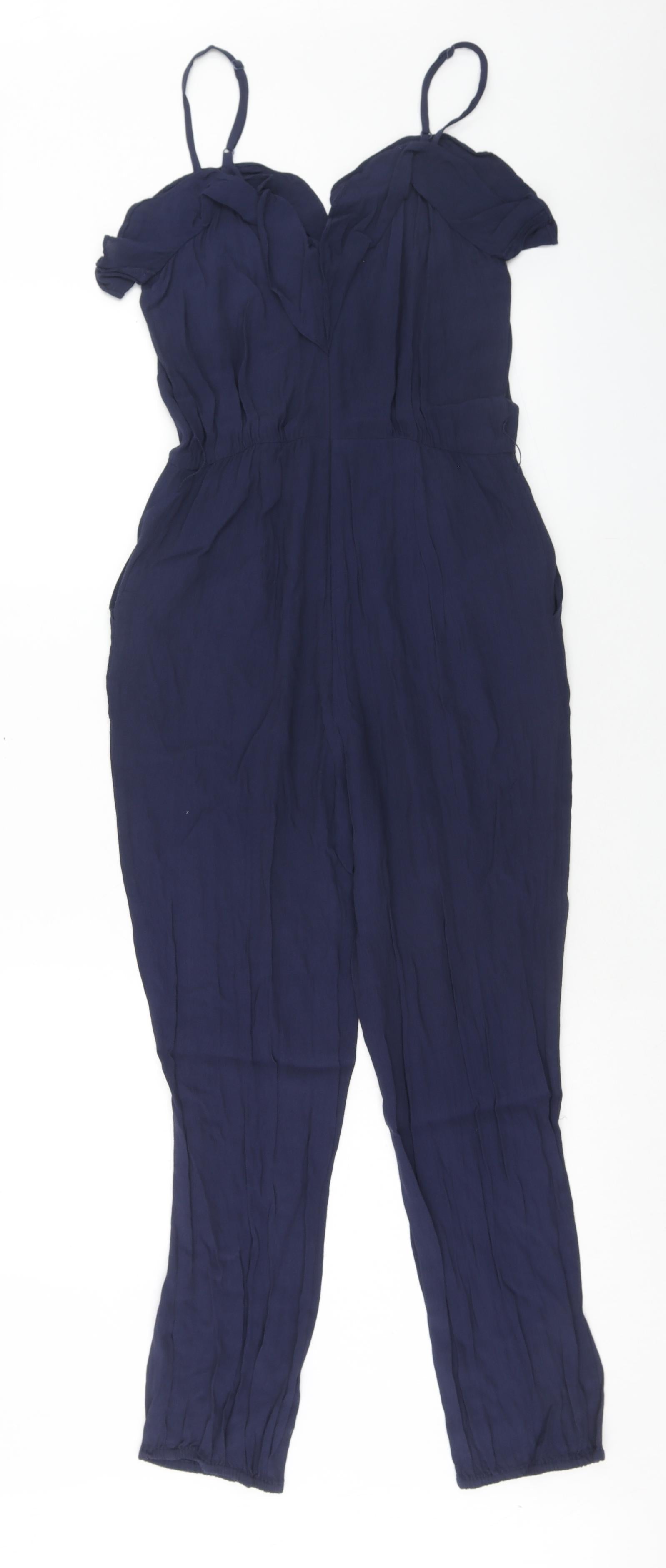 Warehouse Womens Black Viscose Jumpsuit One-Piece Size 8 Zip