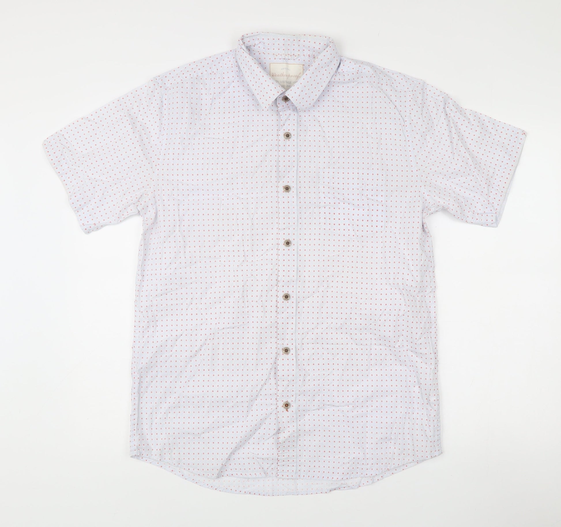 Weatherproof Vintage Men's White Geometric Short Sleeve Cotton Shirt M