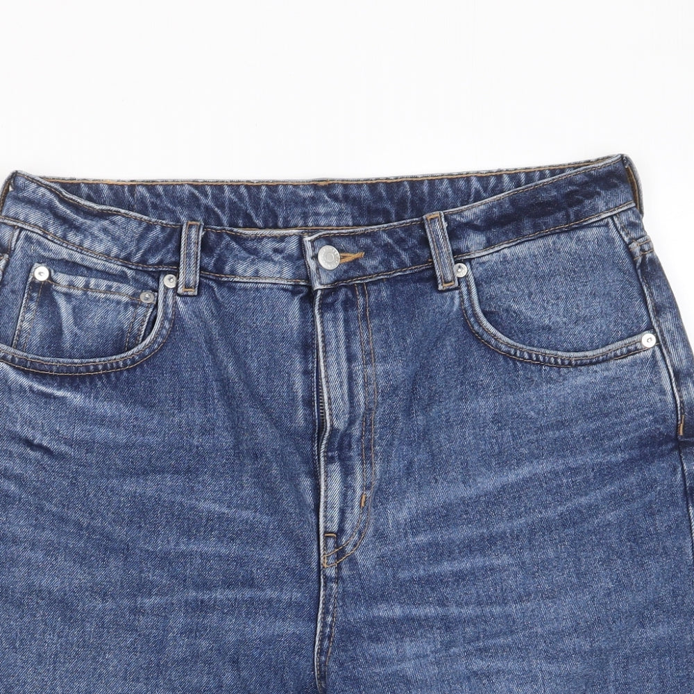 Weekday Womens Blue Cotton Boyfriend Shorts Size 31 in L8 in Regular Zip - Pockets, Logo