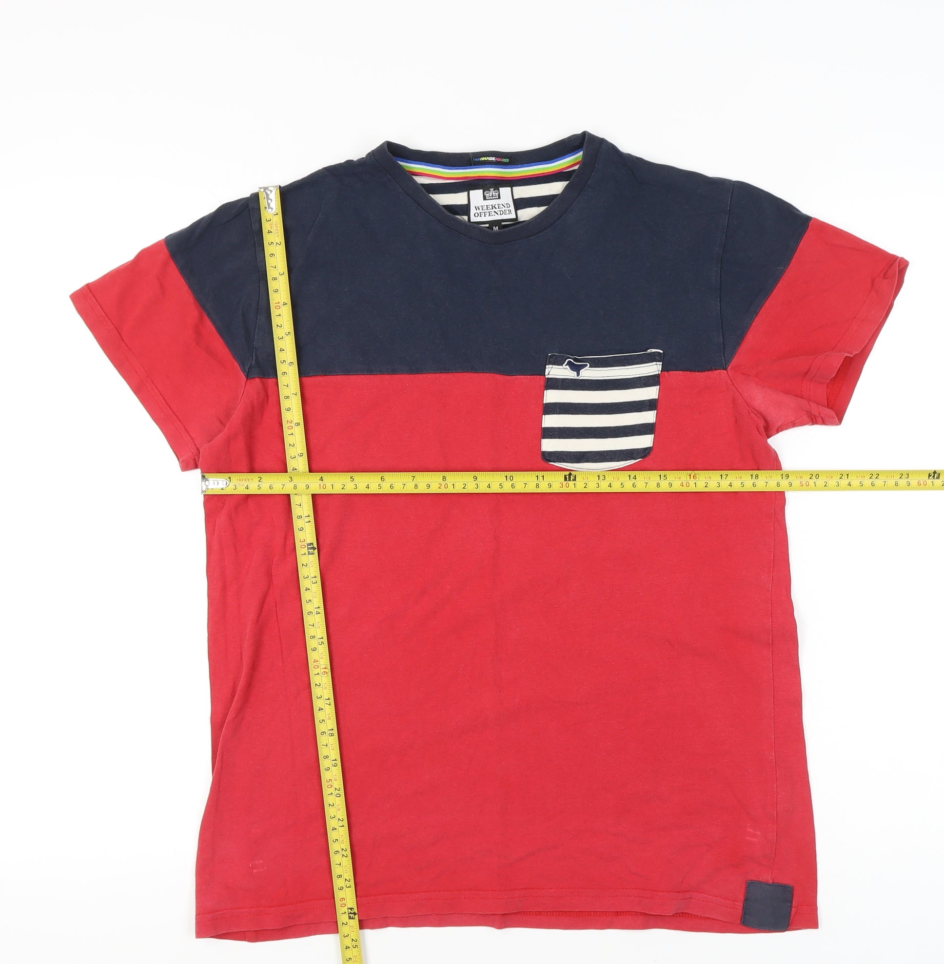 Weekend Offender Mens Medium Red Blue Colourblock Cotton T-Shirt