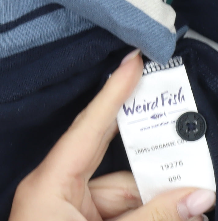 Weird Fish Men’s Blue Striped Long Sleeve Polo Shirt Medium