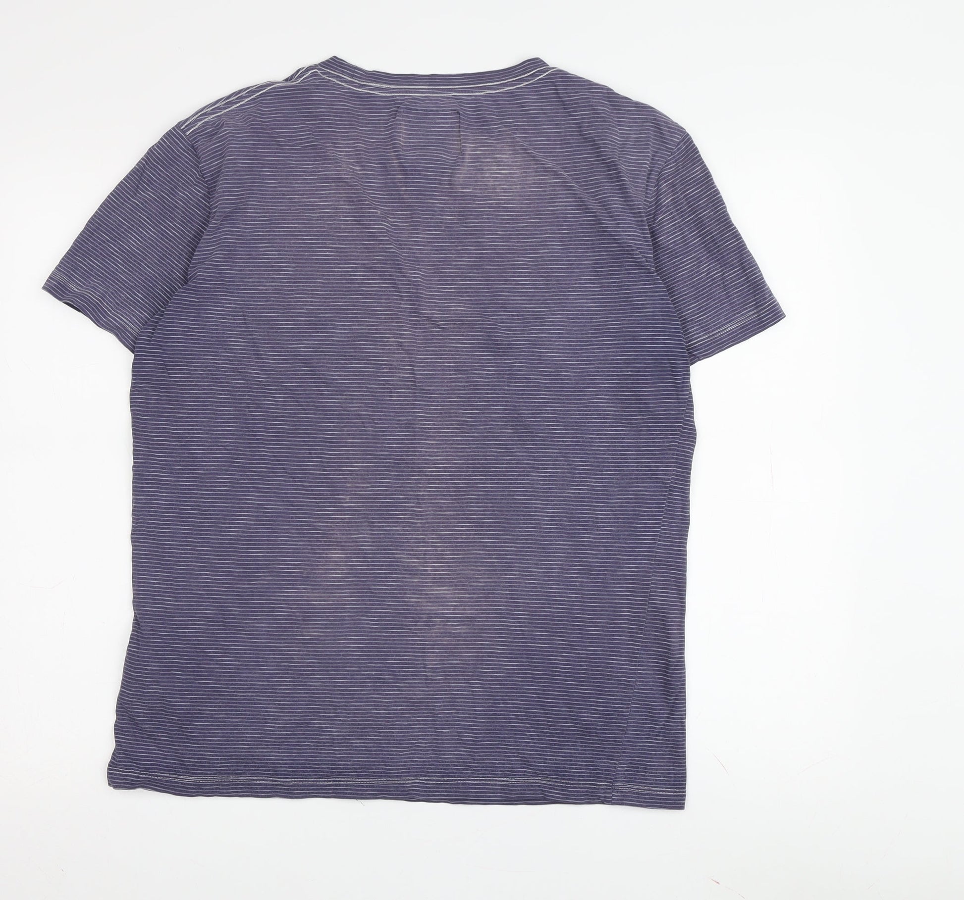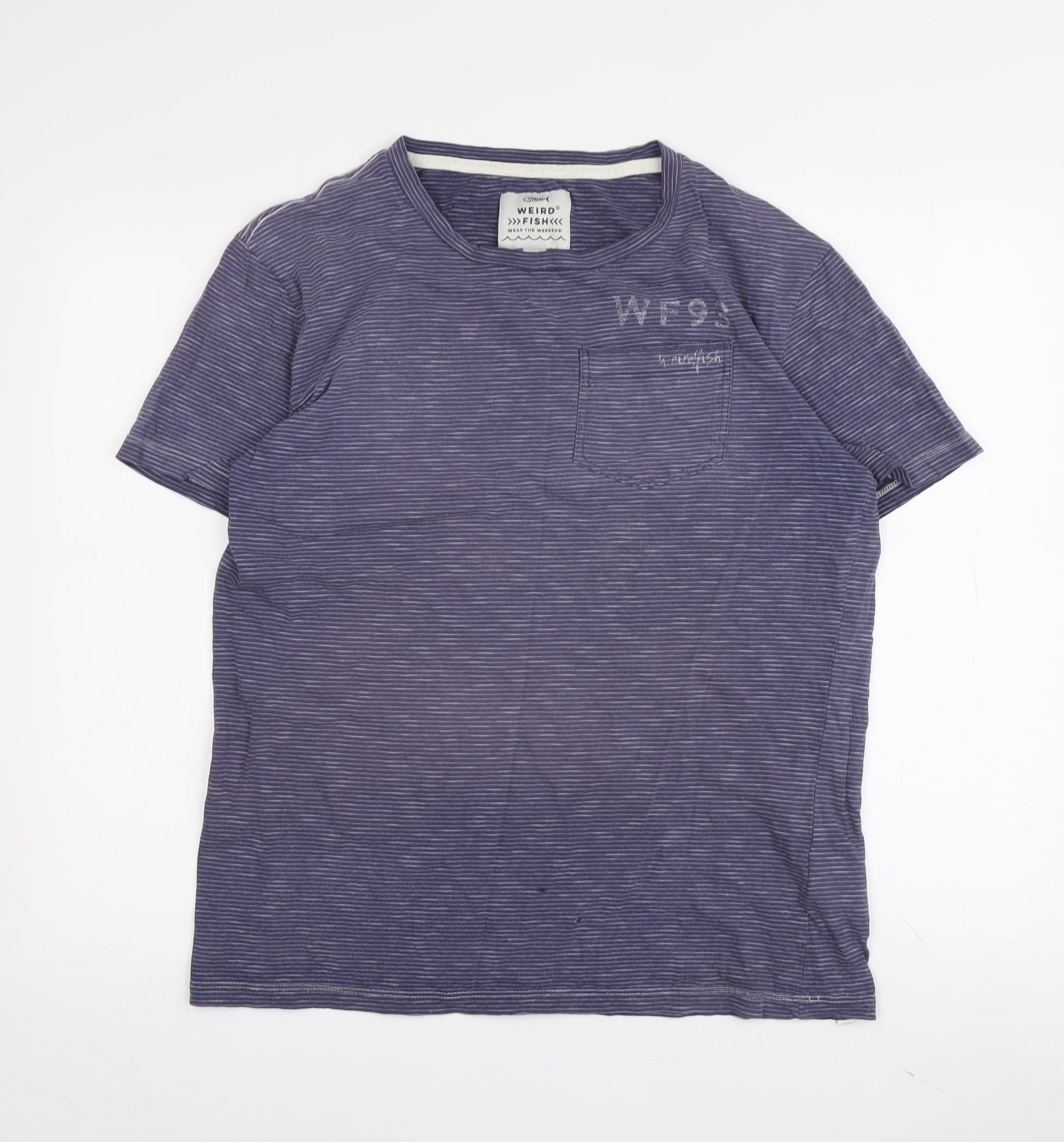 Weird Fish Men's Medium Blue Striped Cotton T-Shirt