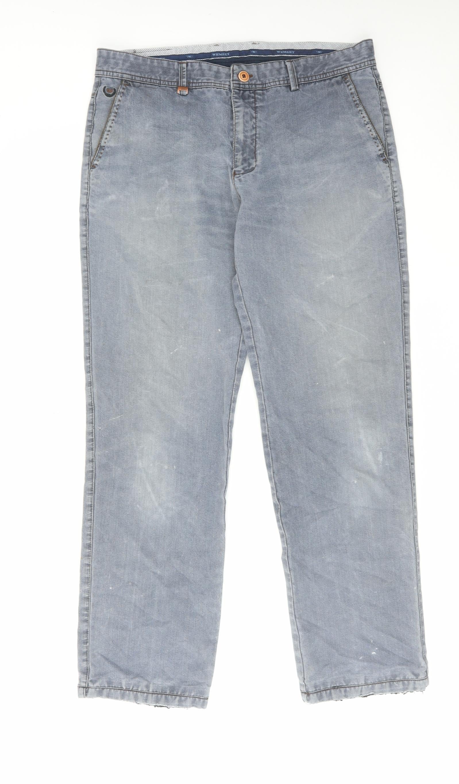Wemsley Mens Blue Cotton Straight Jeans Size 32 in L30 in Regular Zip