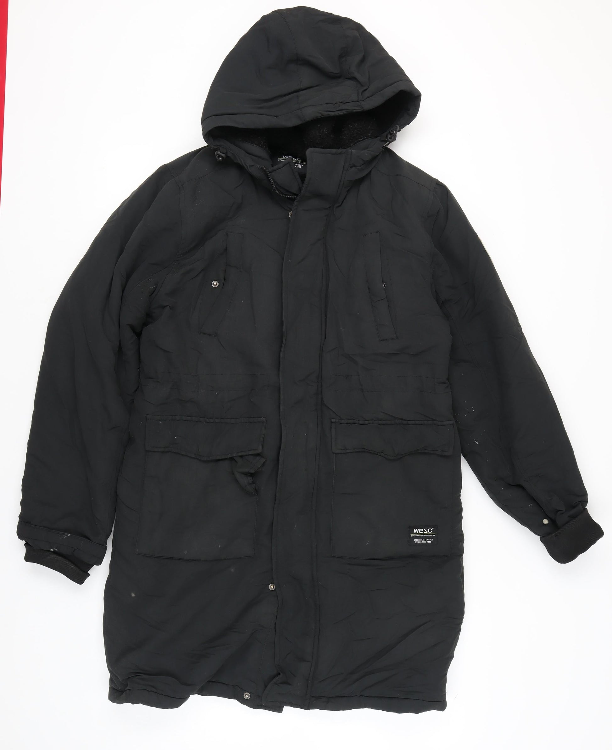 WESC Mens Black Parka Coat Hooded Winter Casual Jacket S