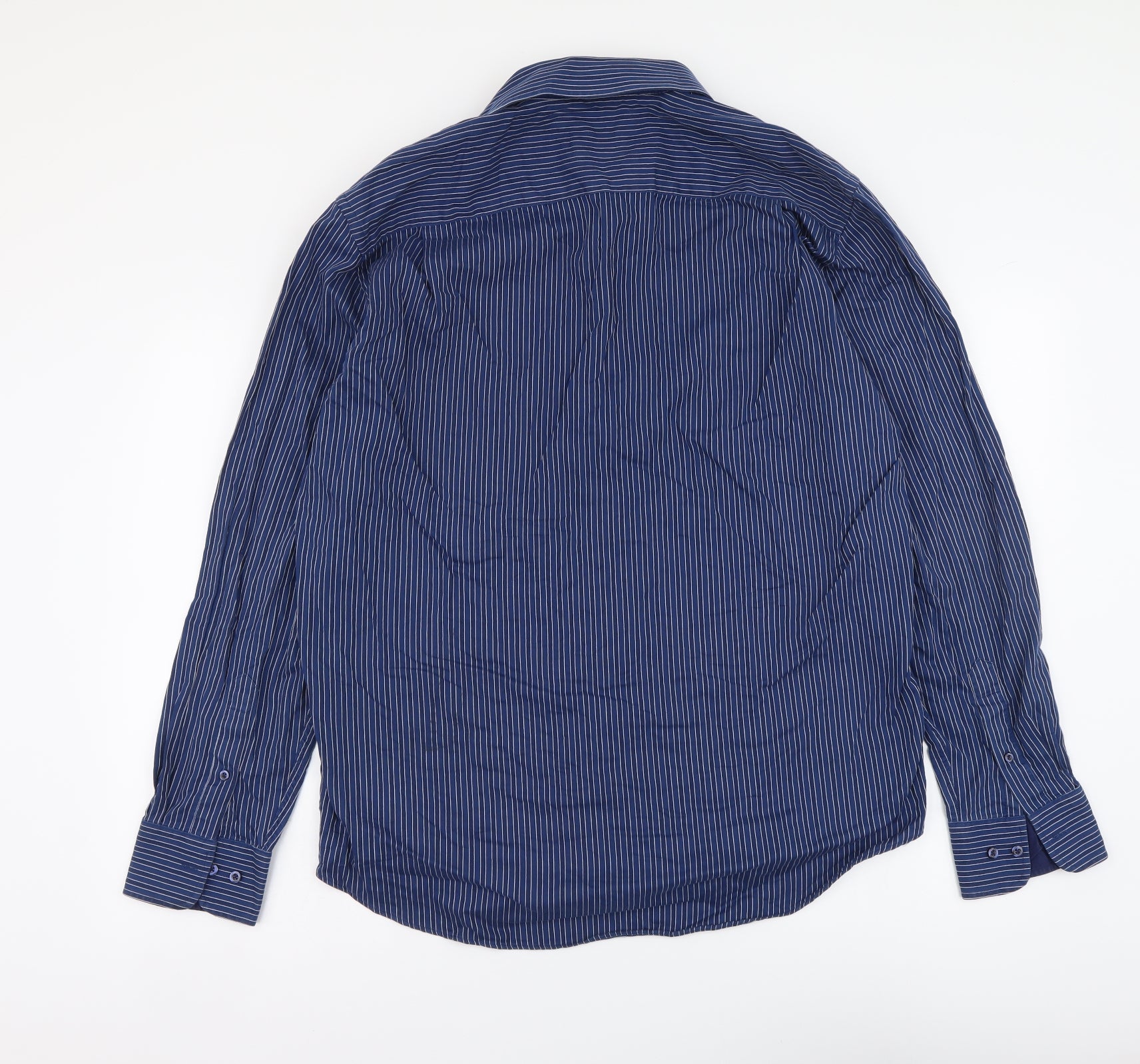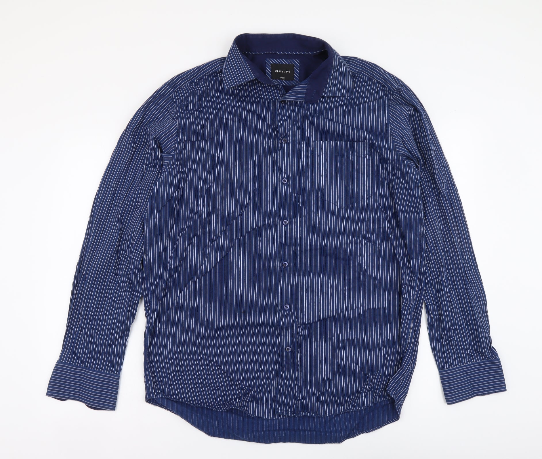 Westbury Mens Blue Striped Cotton Button-Up Size L Collared Button