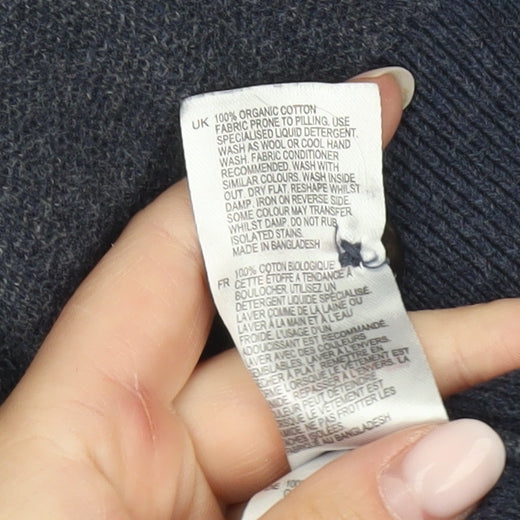 White Stuff Men’s Blue Henley Jumper Size L Mock Neck Cotton