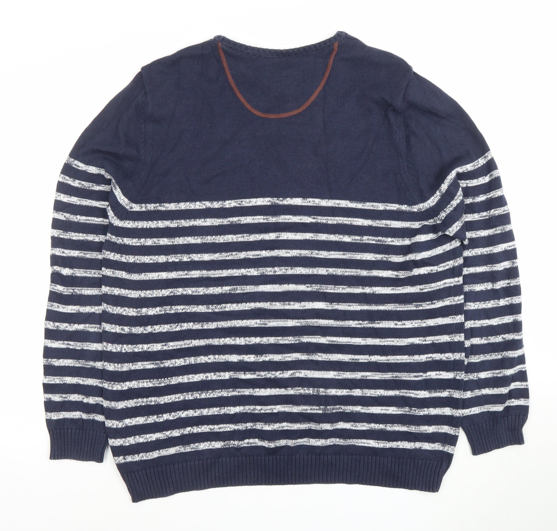 White Stuff Men's Blue Striped Cotton Crew Neck Jumper XXL