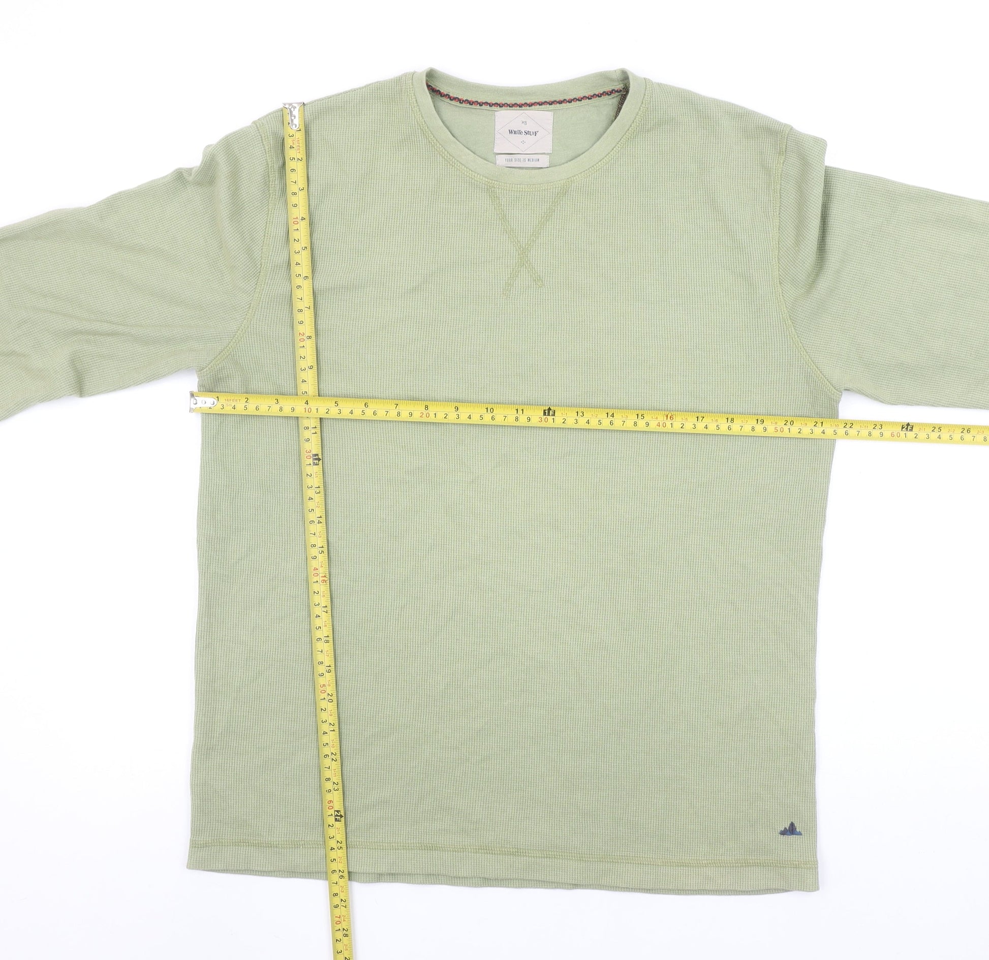 White Stuff Men's Caledon Green Long Sleeve Crew Neck T-Shirt Medium