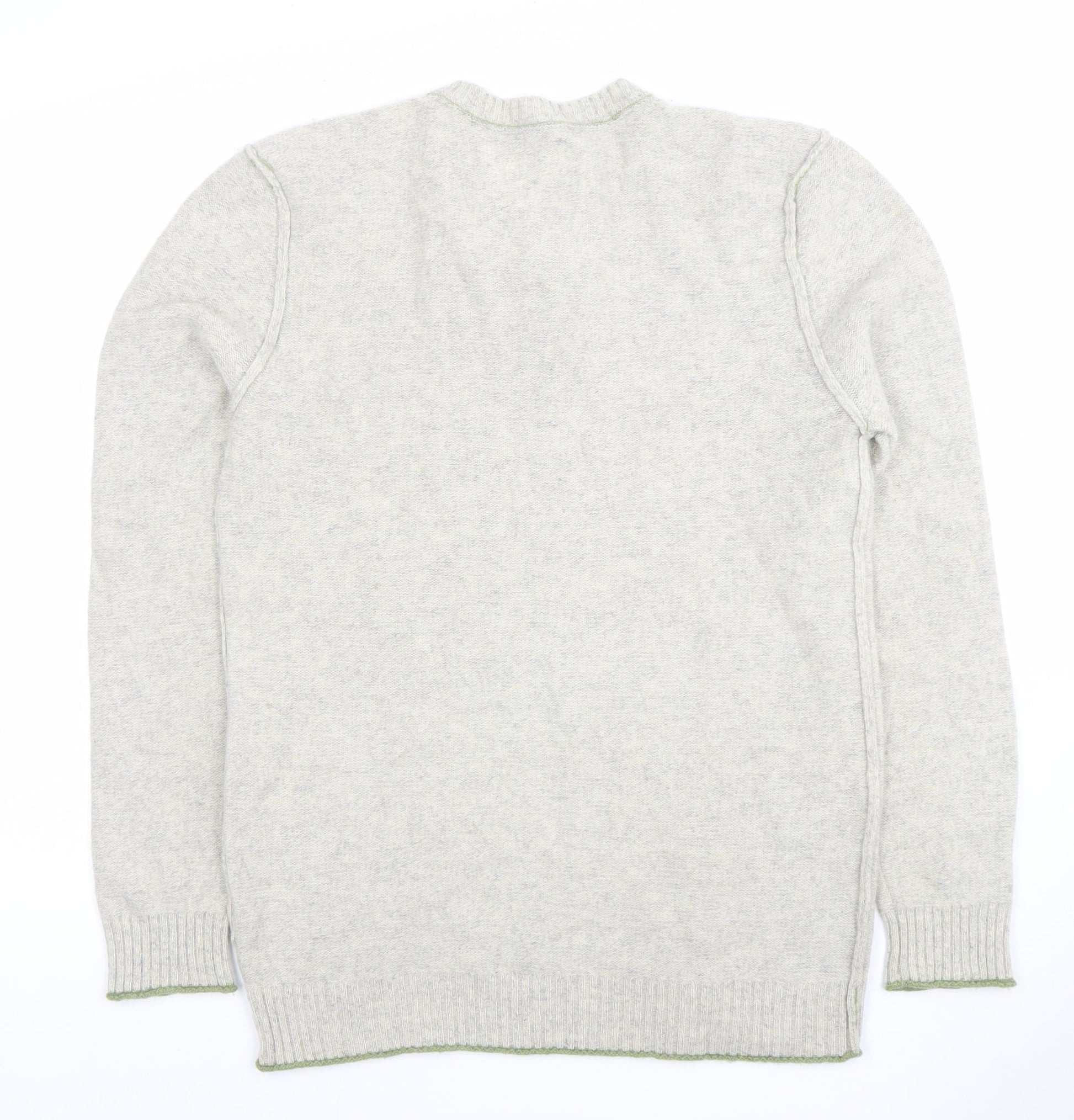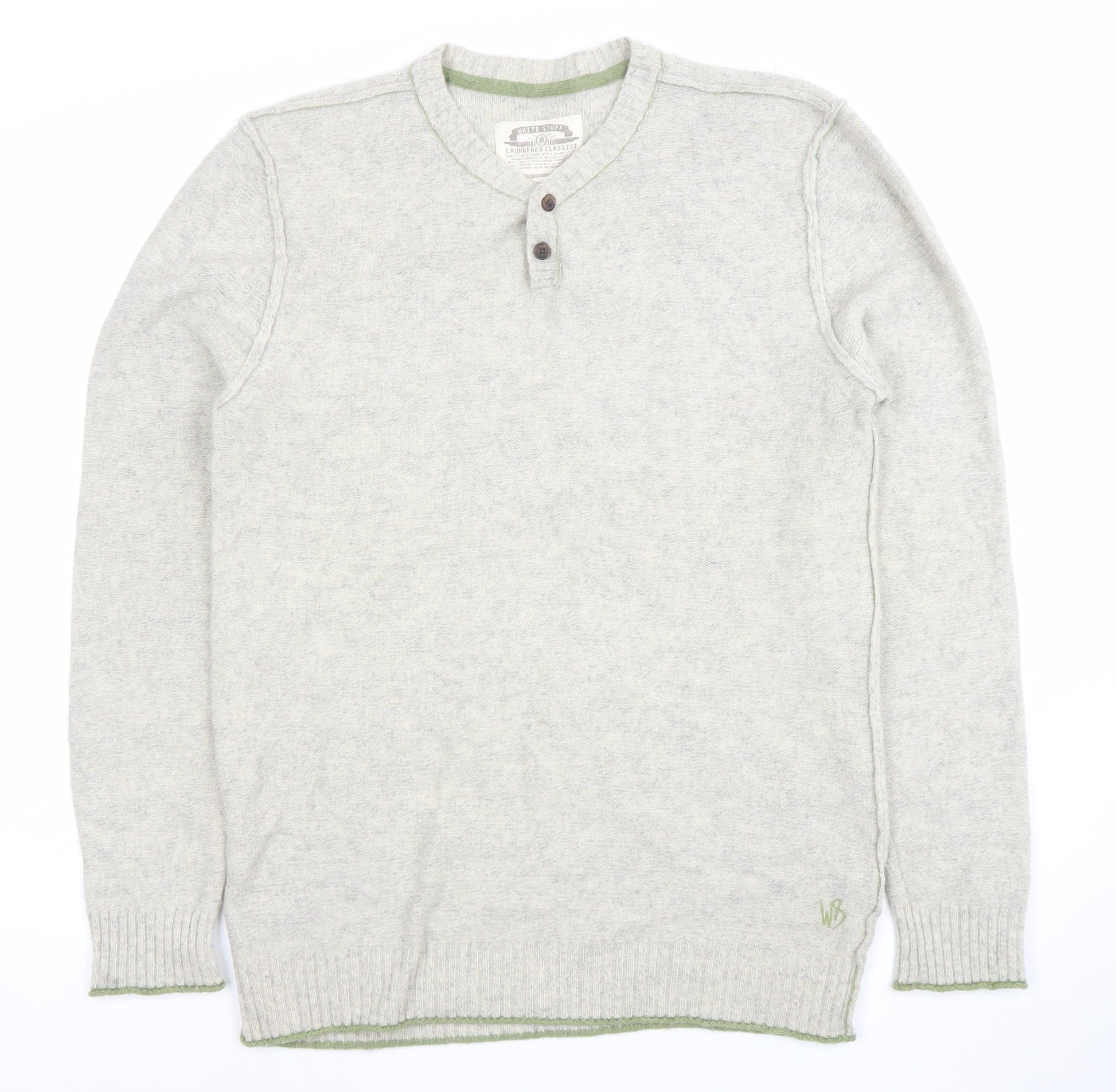 White Stuff Men's Grey Henley Jumper Medium Cotton Cashmere Knit