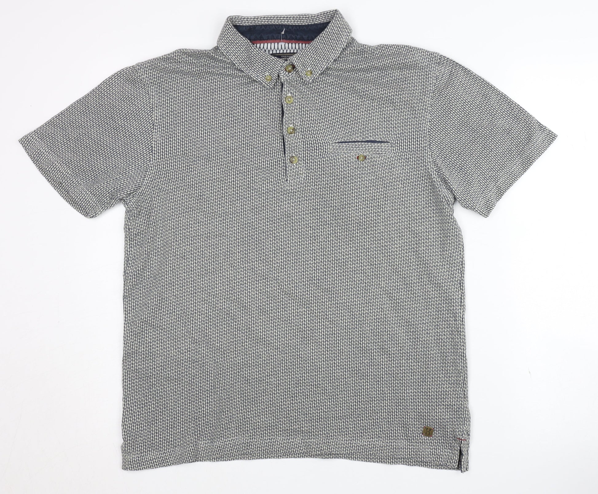 White Stuff Men's Grey Polo Shirt, Size S, Geometric Style