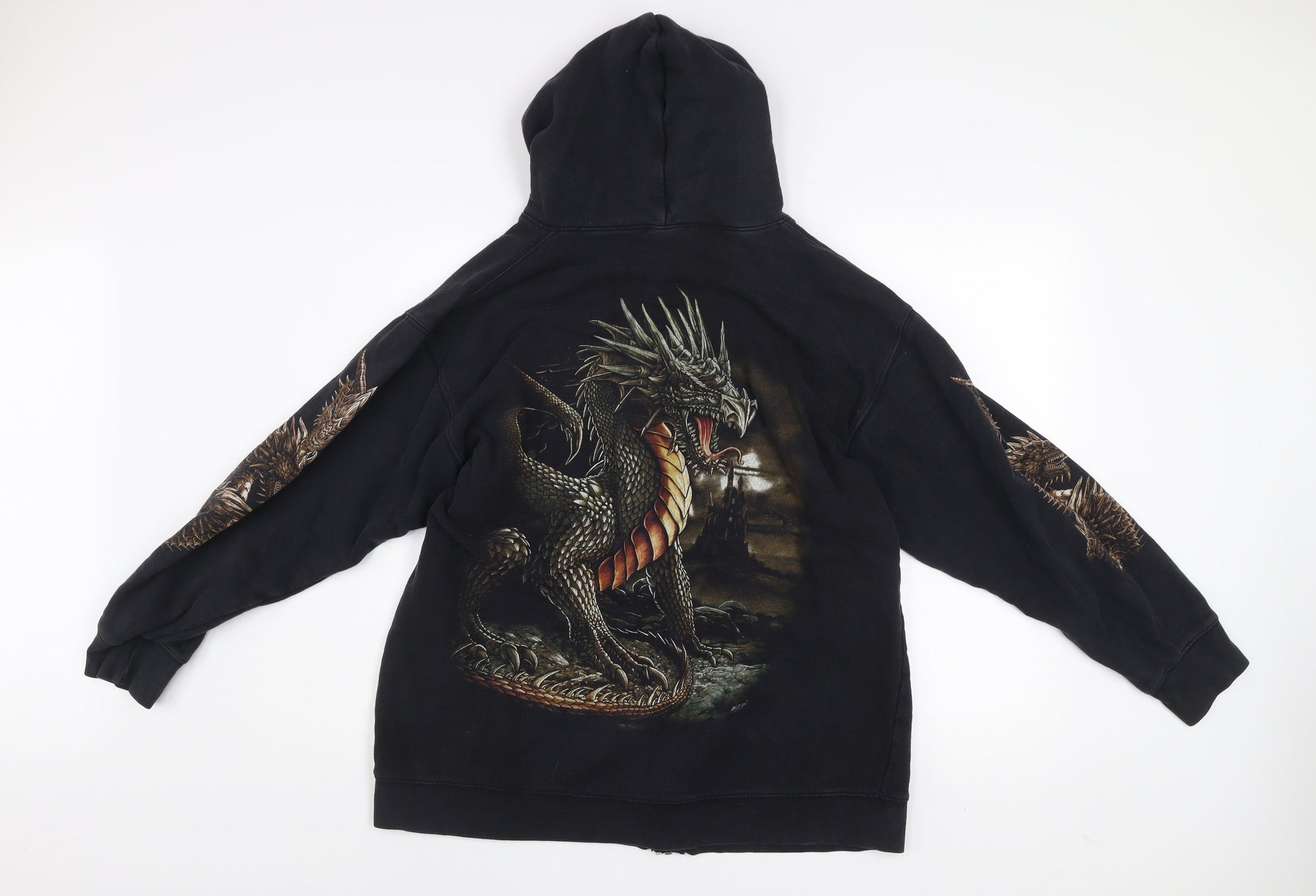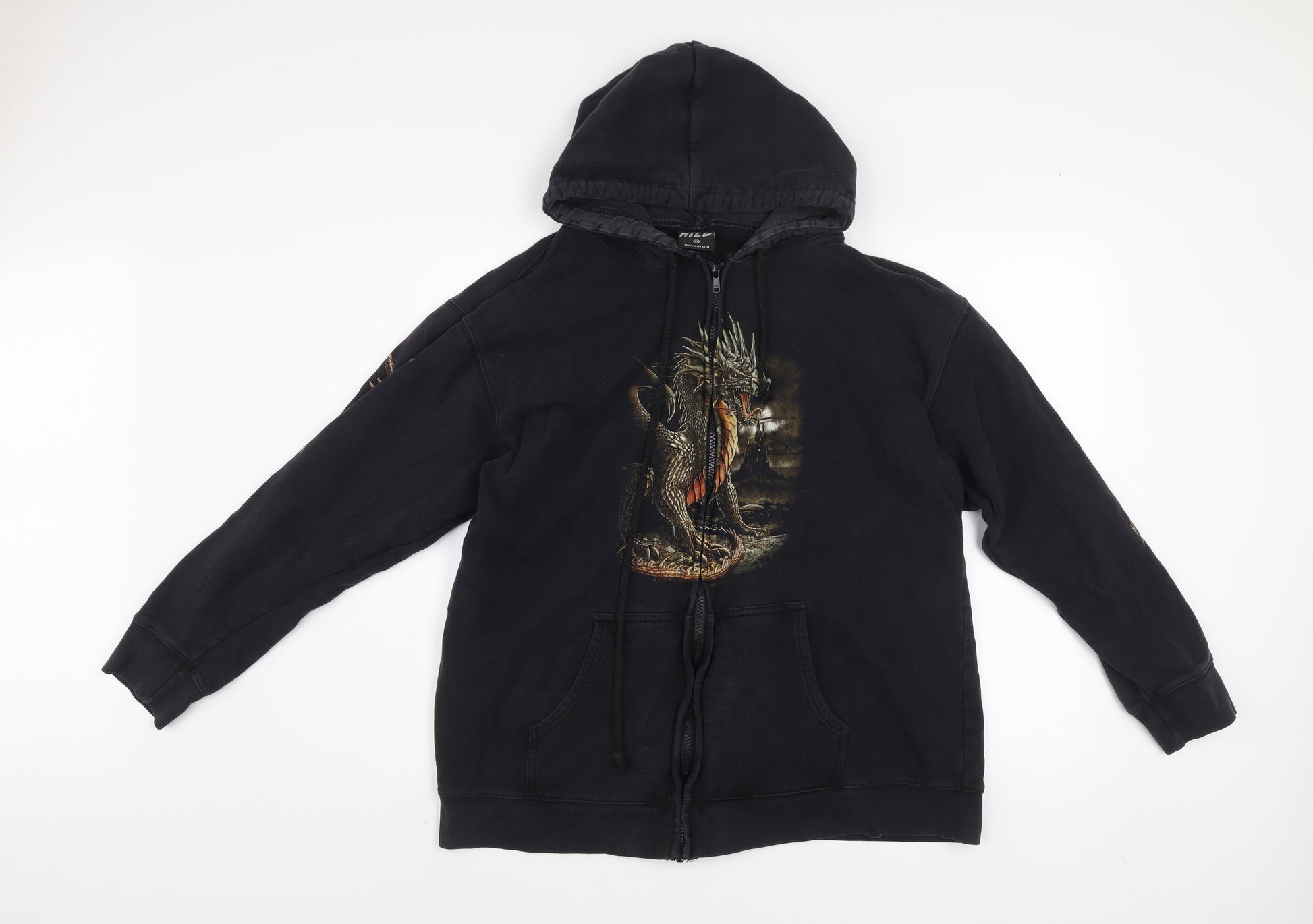 Wild Men's Black Dragon Graphic Full Zip Hoodie Size L