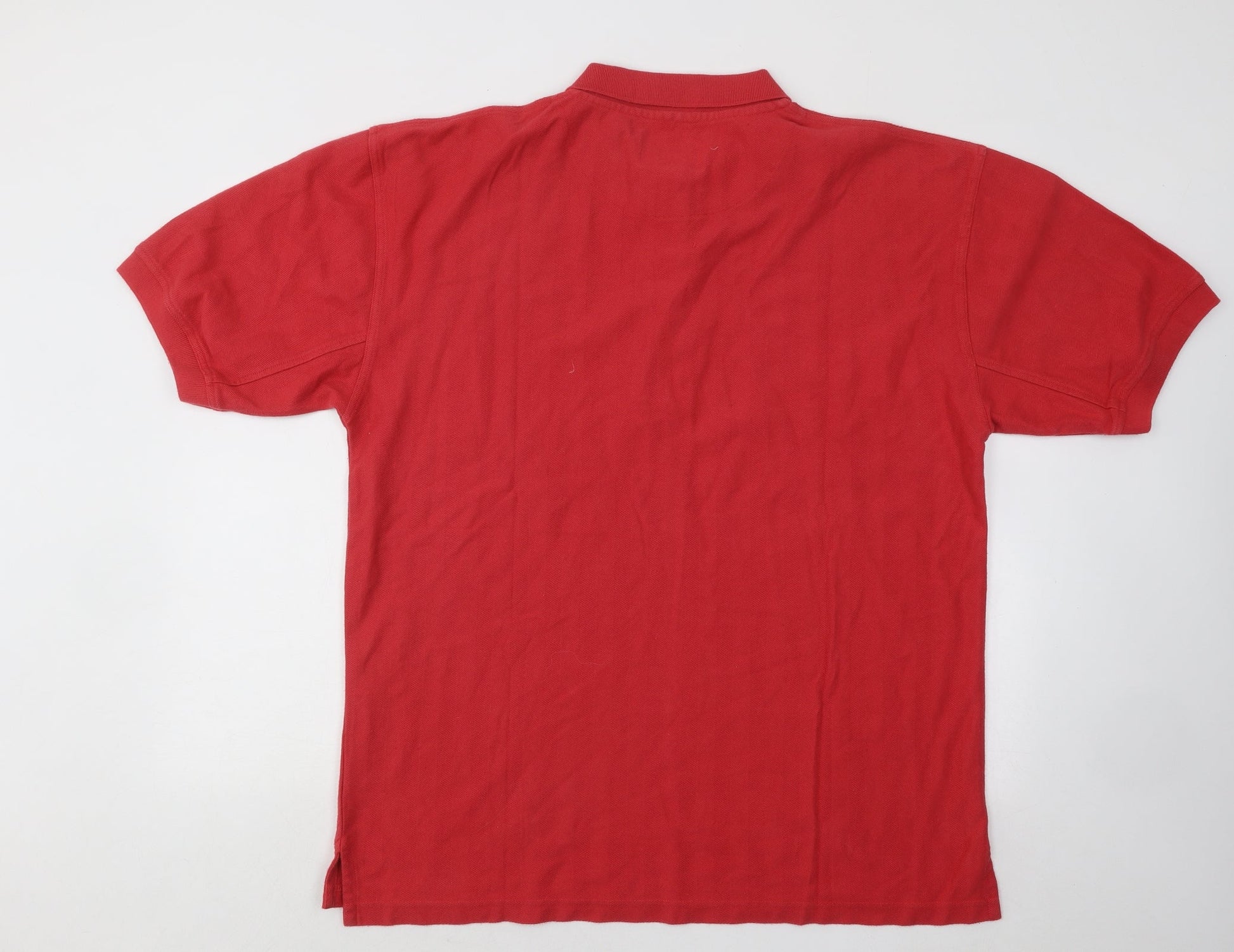 William Ellis Mens Red Cotton Polo Size L Collared Button