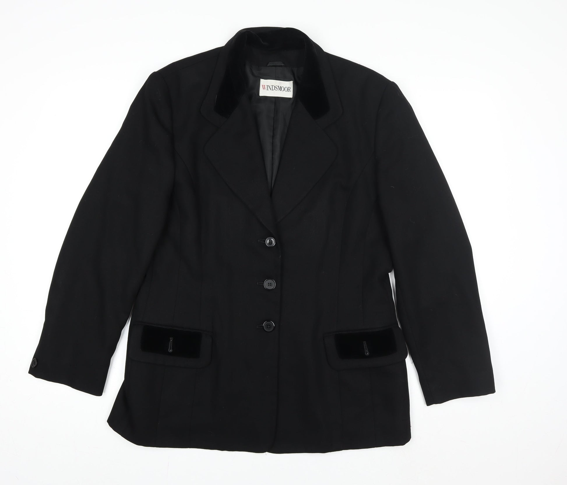 Windsmoor Women Black Size 14 Pure New Wool Lined Tailored Blazer