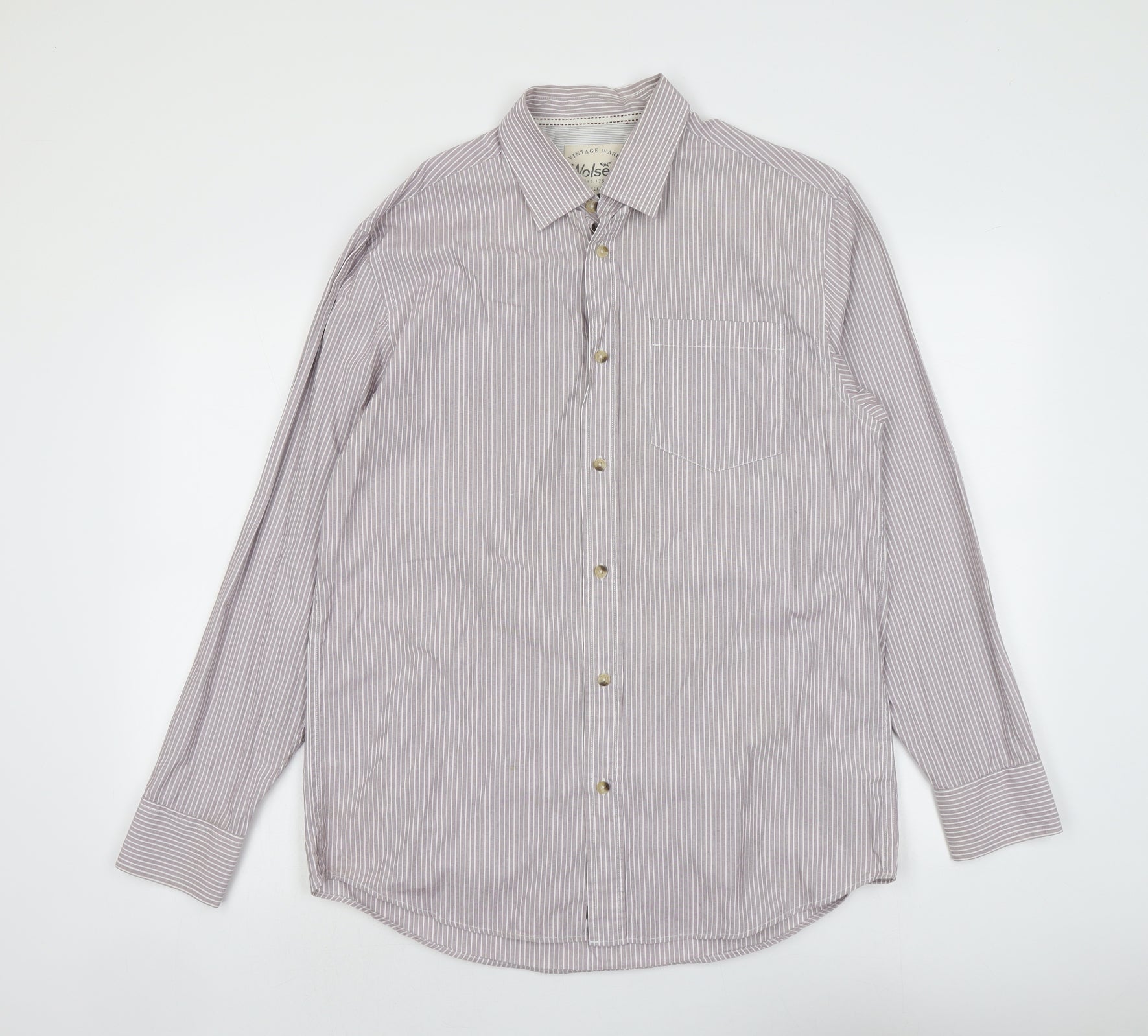 Wolsey Mens Pink Striped Cotton Button-Up Size M Collared Button