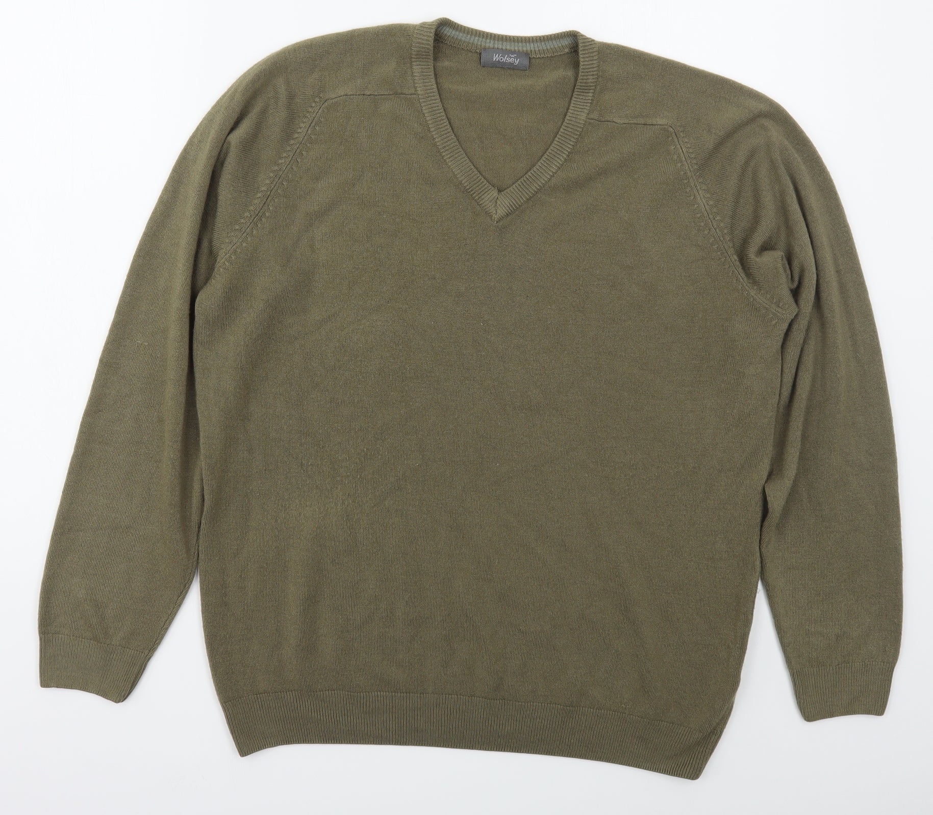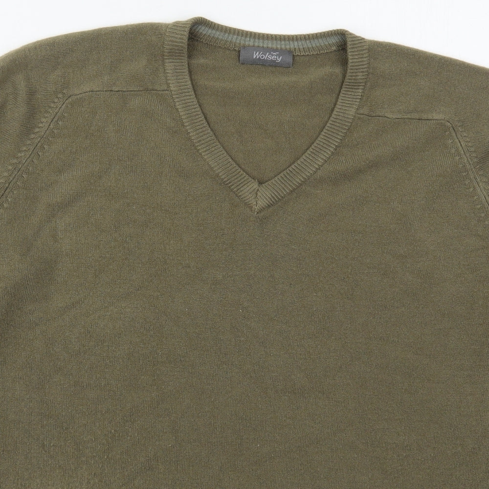Wolsey Mens White V-Neck Geometric Acrylic Pullover Jumper Size L