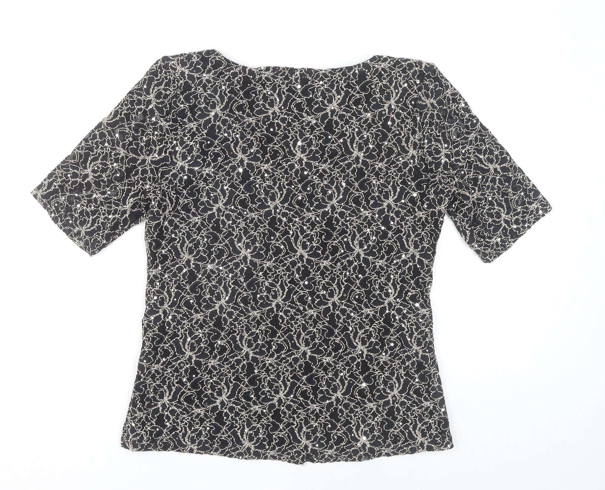 Women's Black Short Sleeve Floral Lace Top