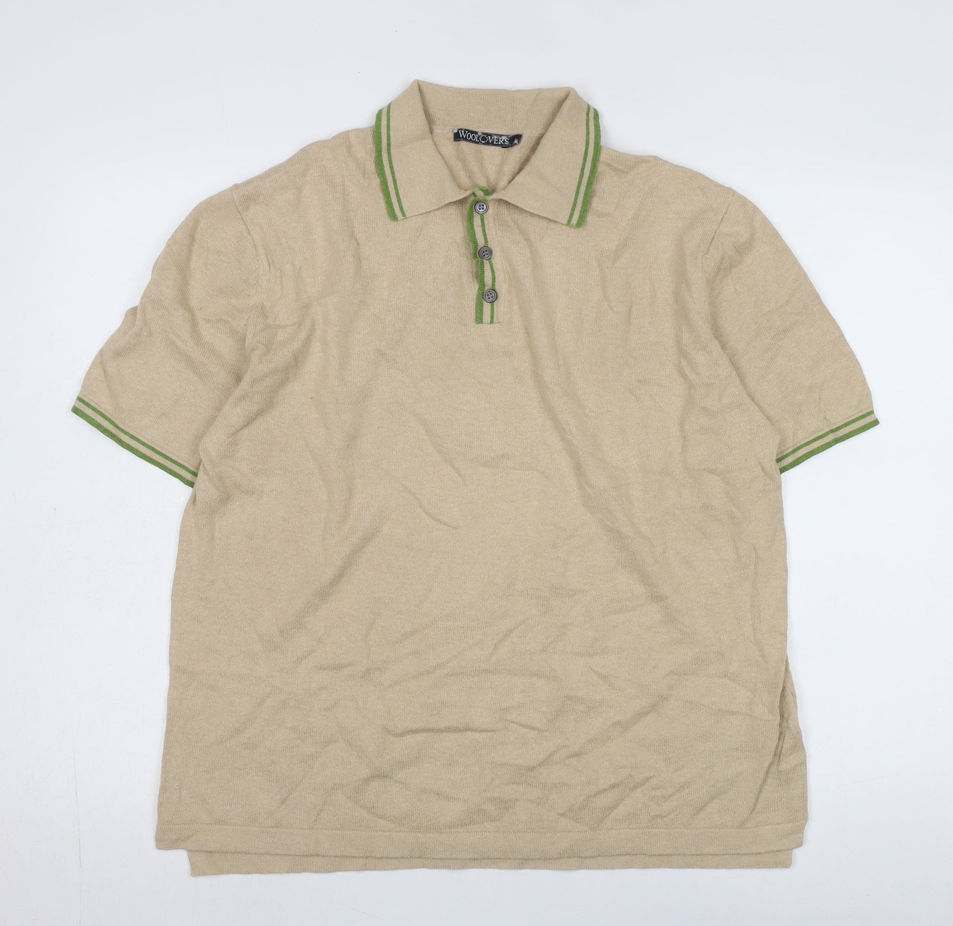 Woolovers Men's Beige Collared Short Sleeve Jumper