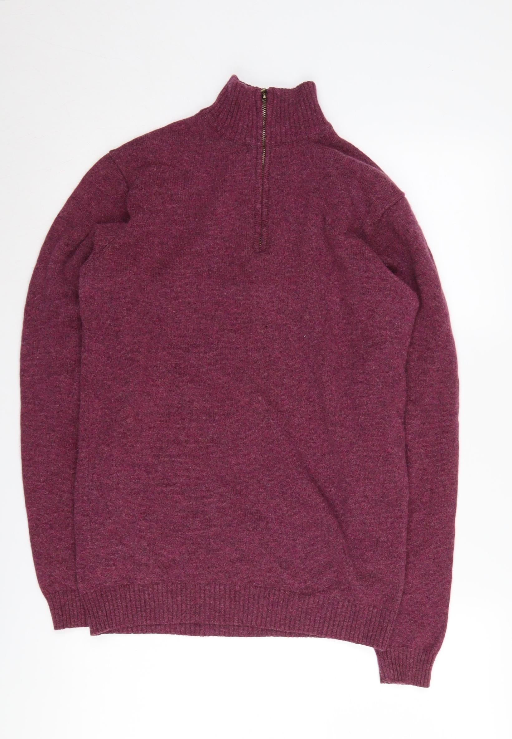 WoolOvers Men's Purple Wool Pullover S - High Neck Jumper