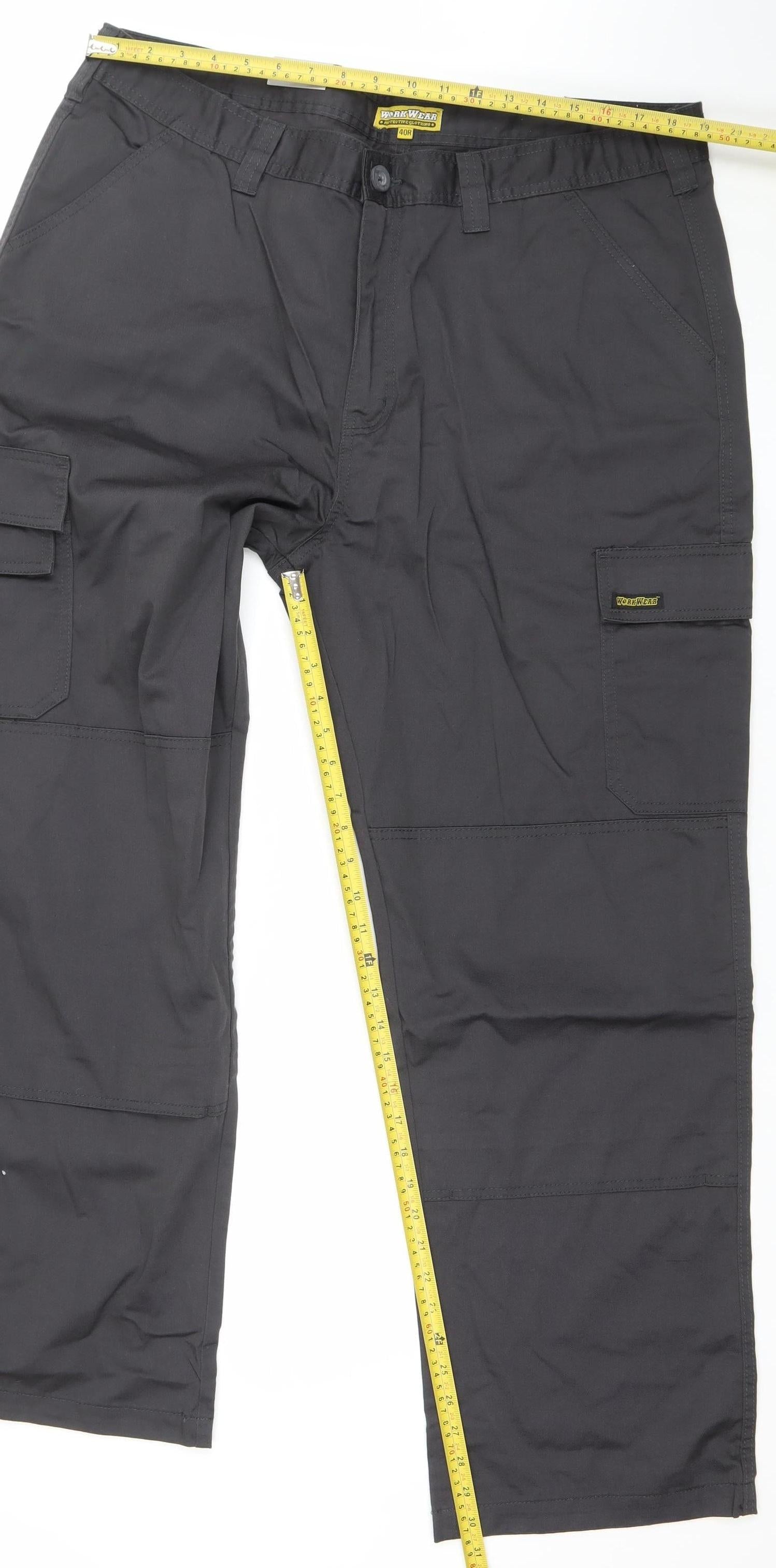 Workwear Men's Black Cargo Work Trousers 40R Cotton Blend Durable