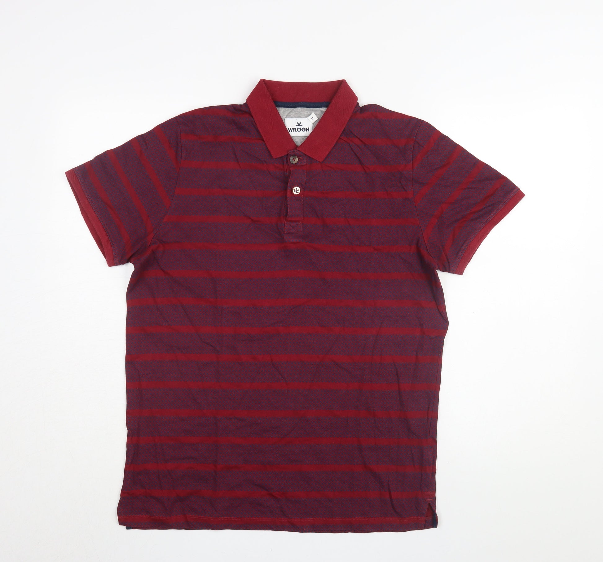 WROGN Men's Red Striped Polo Shirt L Cotton