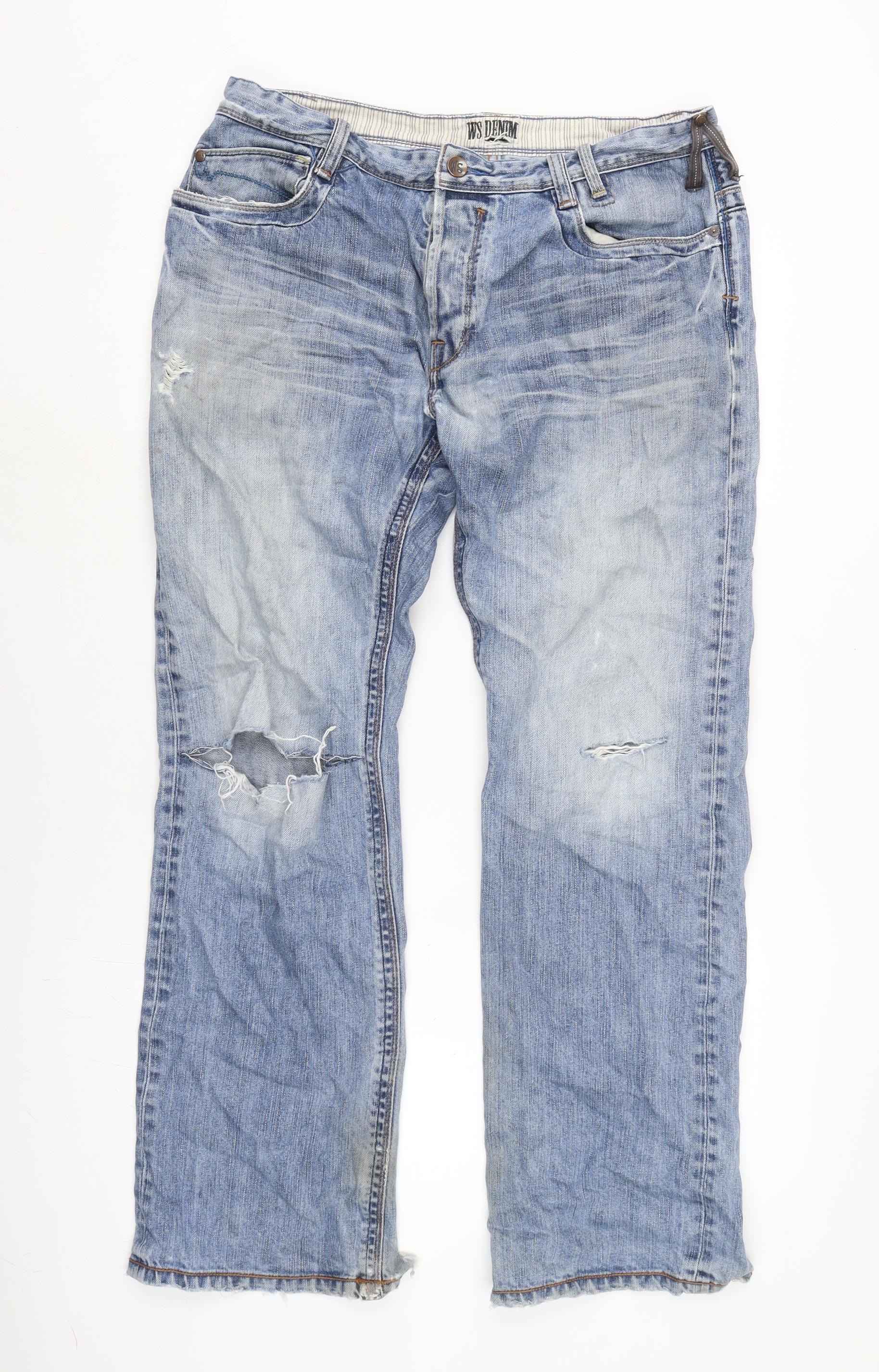 WS Denim Mens Blue Cotton Straight Jeans Size 32 in L29 in Regular Button