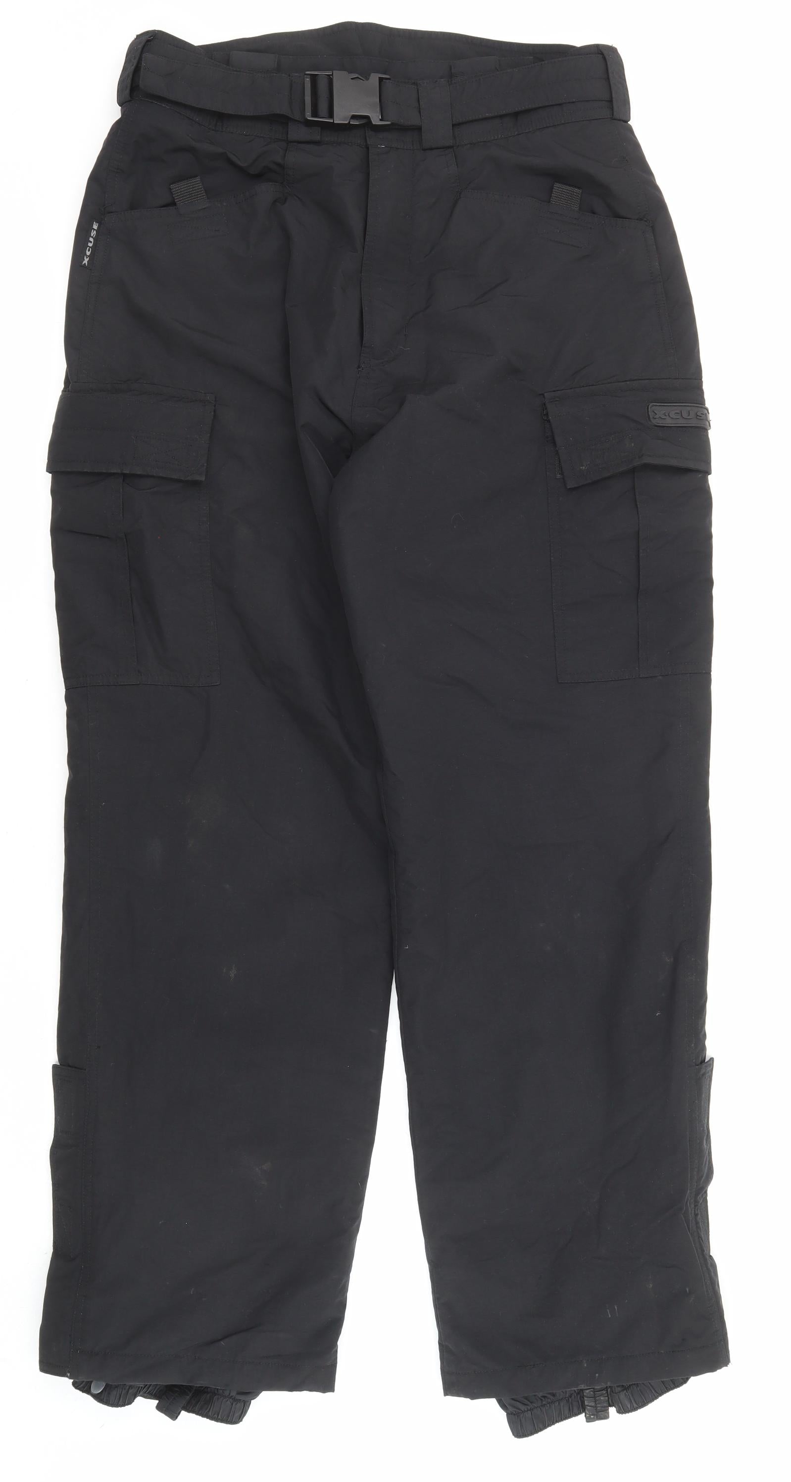 X-Cuse Mens Black Nylon Cargo Trousers Size L L30 in Regular Zip
