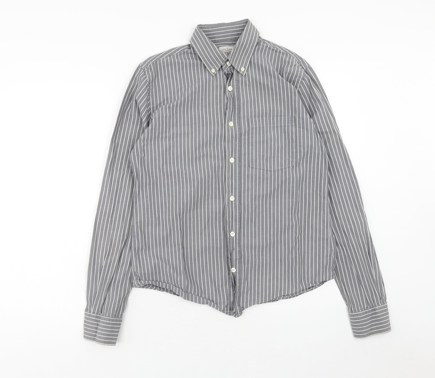 XDye Mens Grey Striped Cotton Button-Up Size M Collared Button