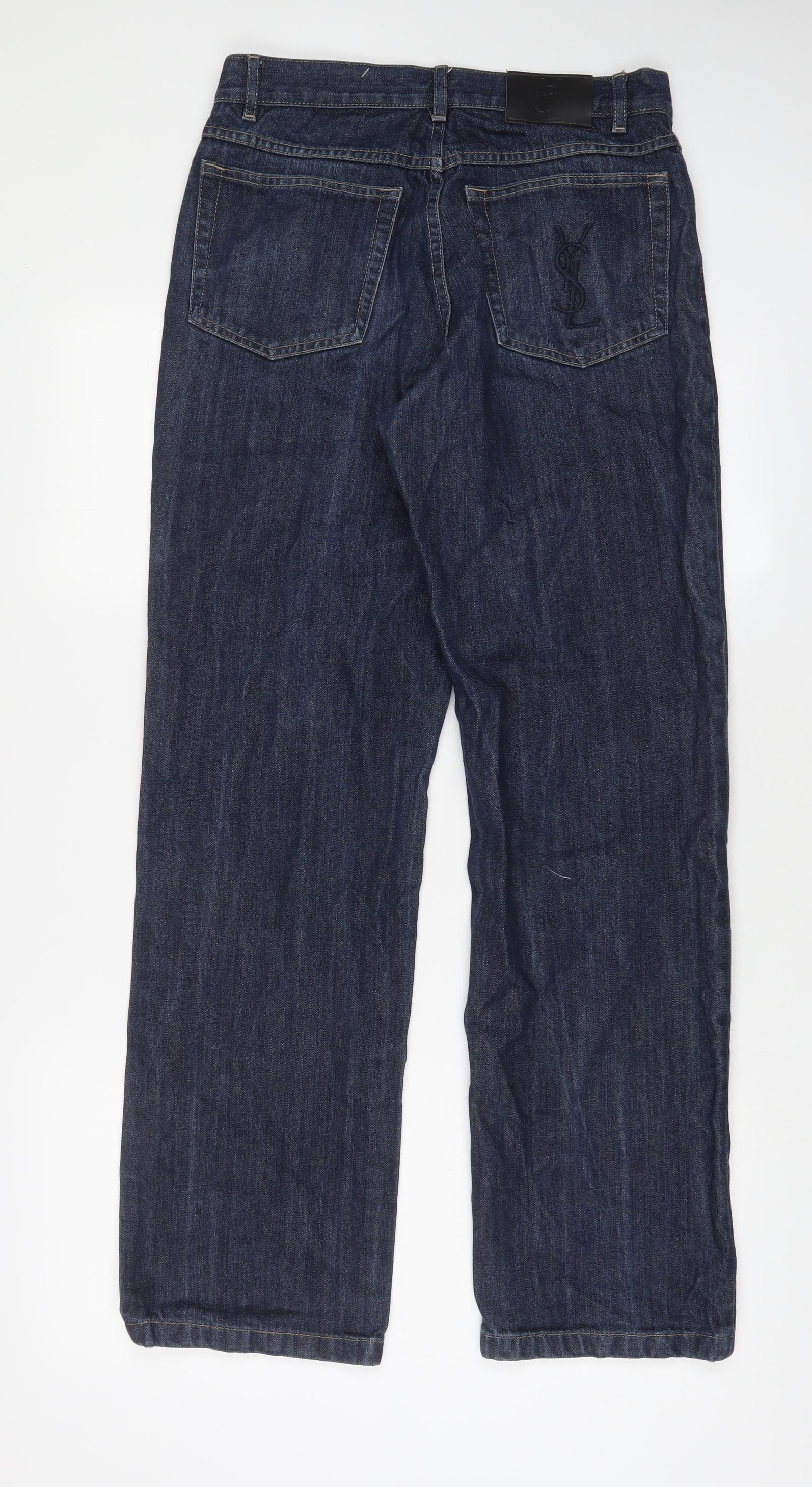 Yves Saint Laurent Mens Blue Cotton Straight Jeans Size 30 in L32 in Regular Button - Embroidered