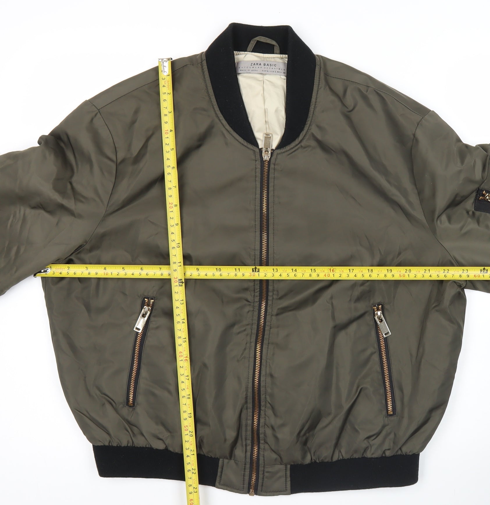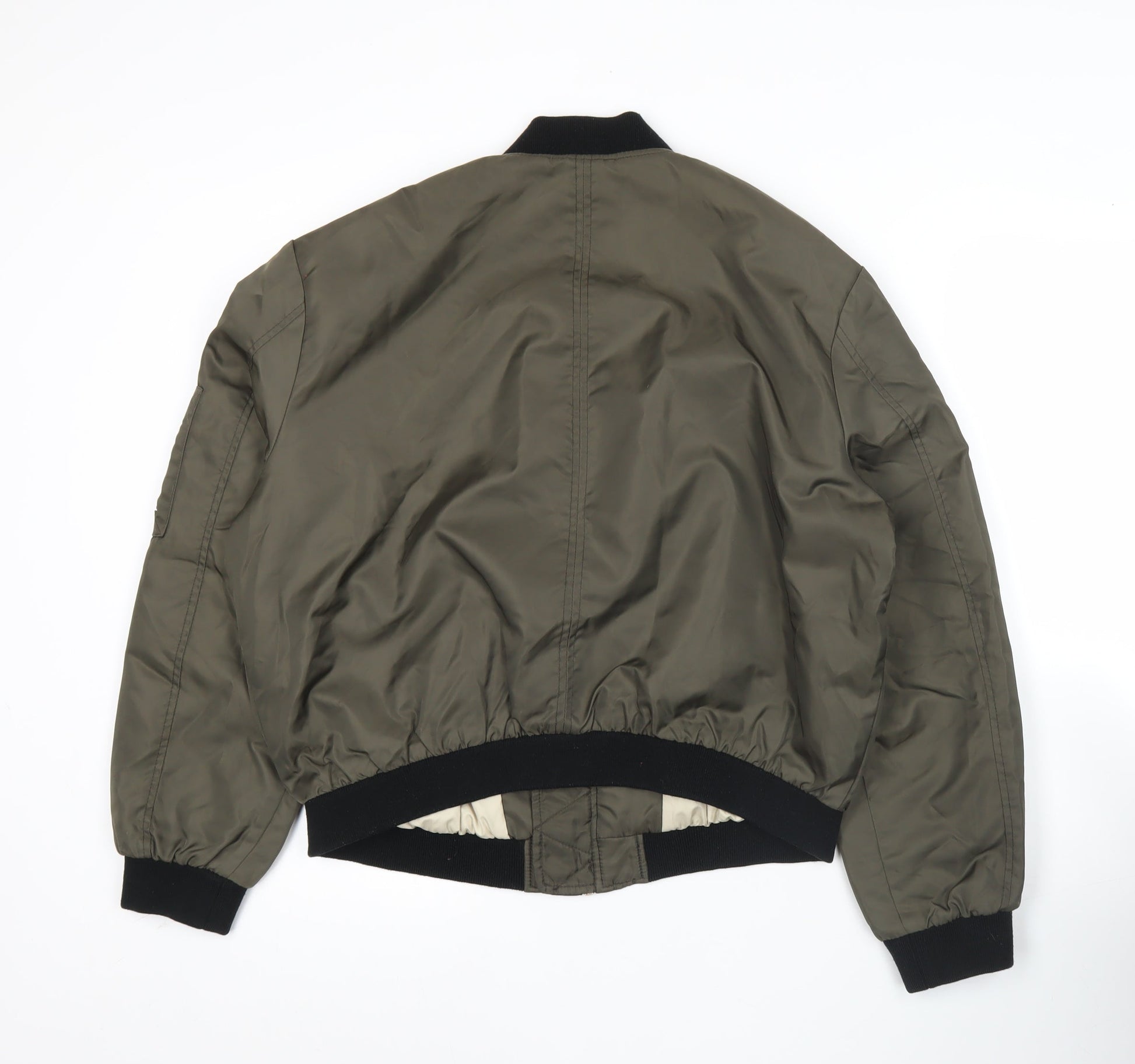 Zara Basic Men’s Green Bomber Jacket L Zip Pockets Casual