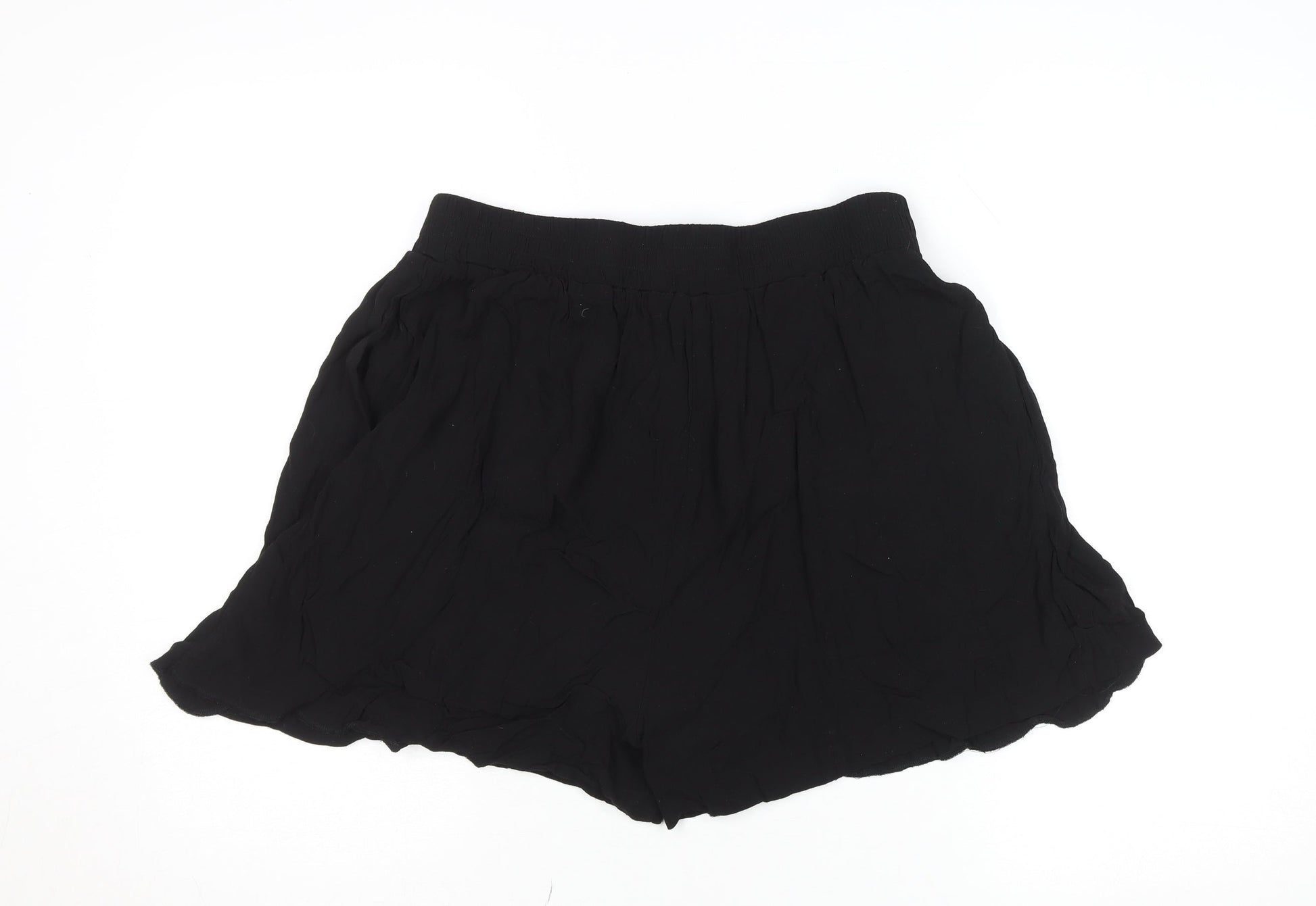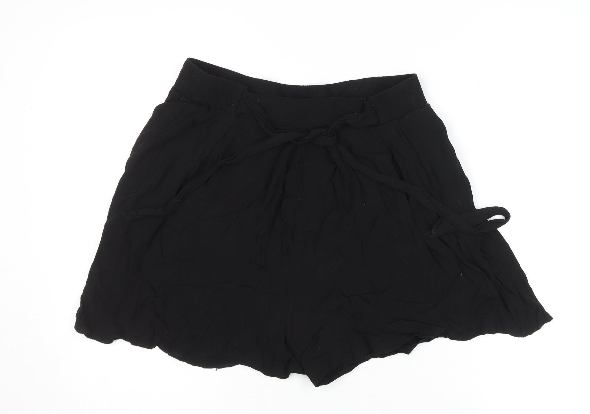 Zara Basic Women’s Black Paperbag Shorts Size L Viscose Drawstring
