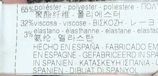 - Material Breakdown: 65% Polyester 32% Viscose 3% Elastane
