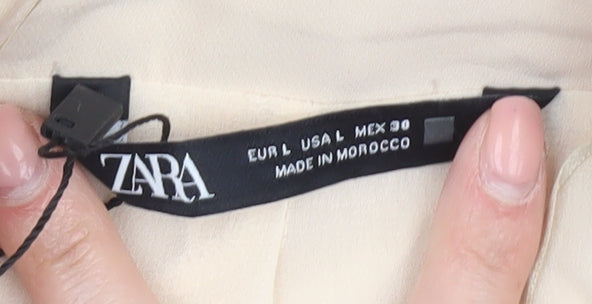 Zara Beige Women's Belted Collared Playsuit Size 14